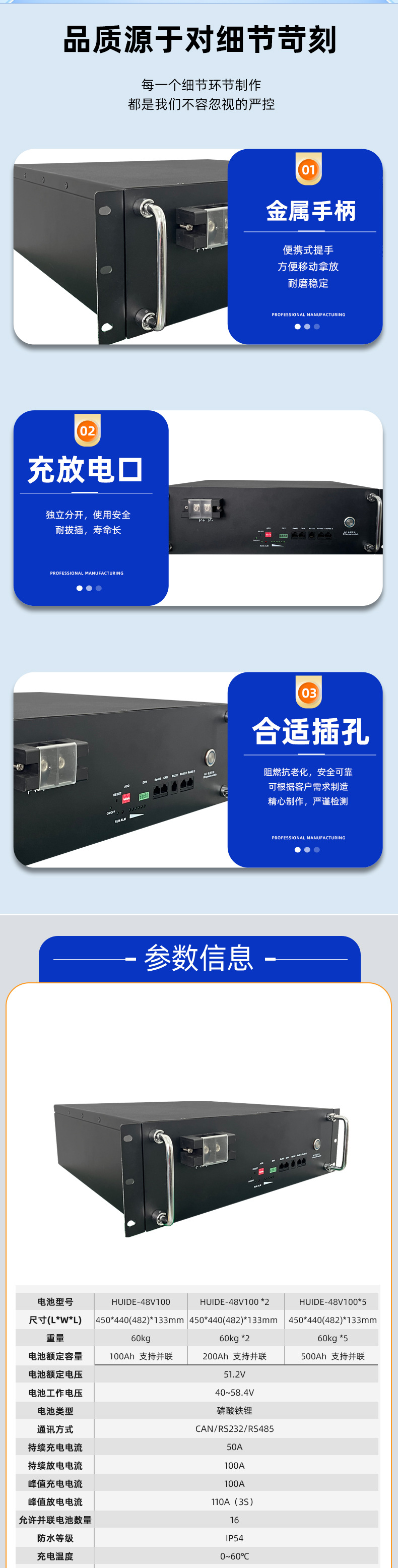 HD48V100Ahラック型リチウム電池パック引き出し型蓄電リン酸鉄リチウム電池太陽光発電4U通信基地局