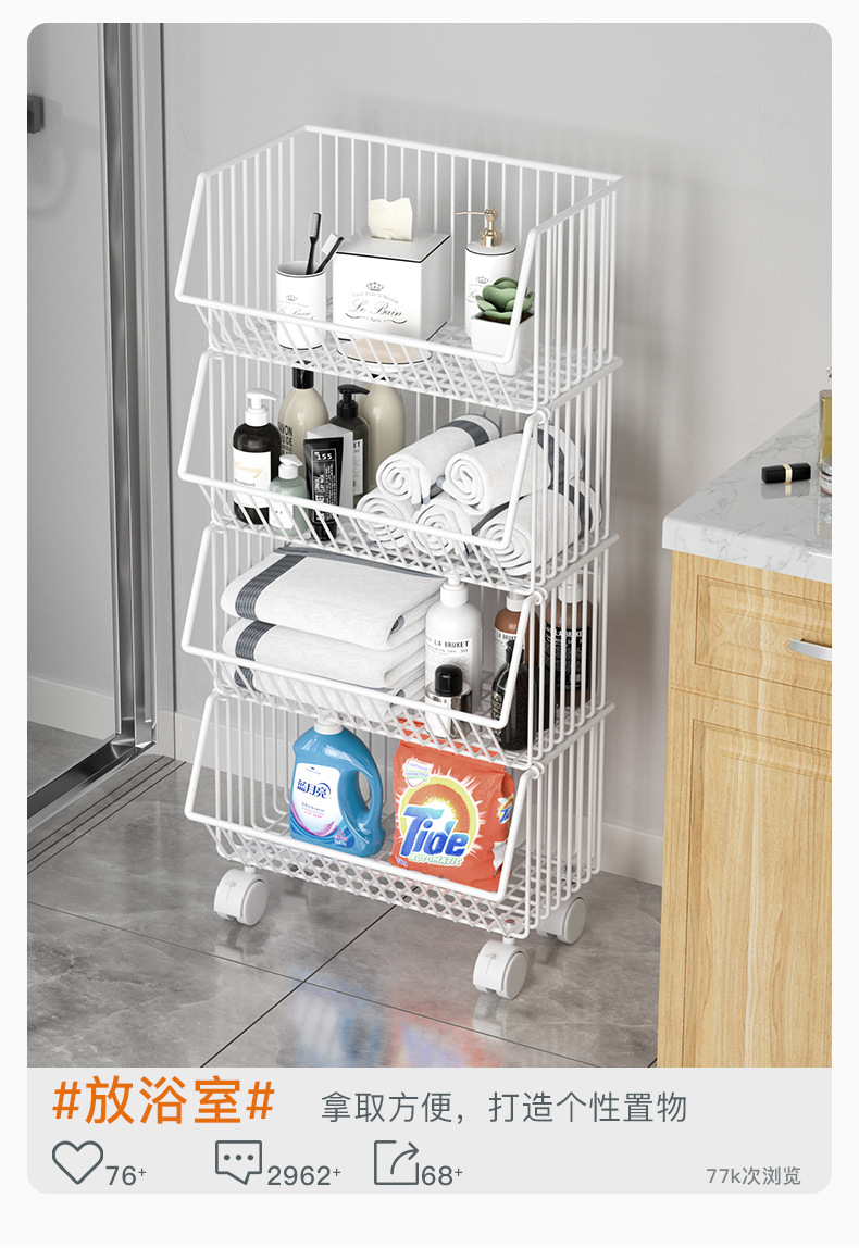 キッチンラック多層床置き果物と野菜家庭用モバイルトロリー浴室リビングルームおもちゃ収納Jueqin