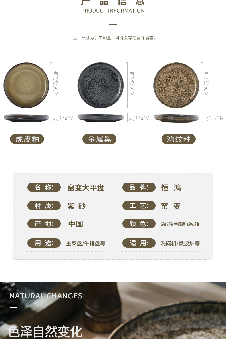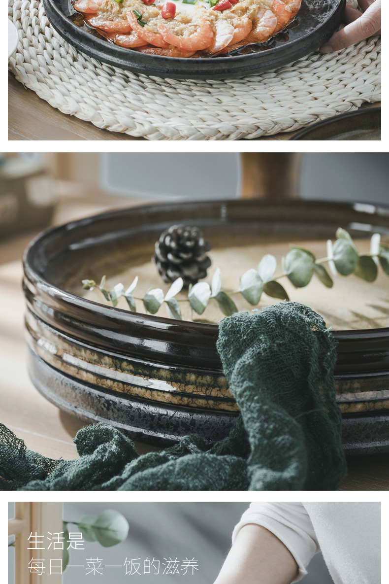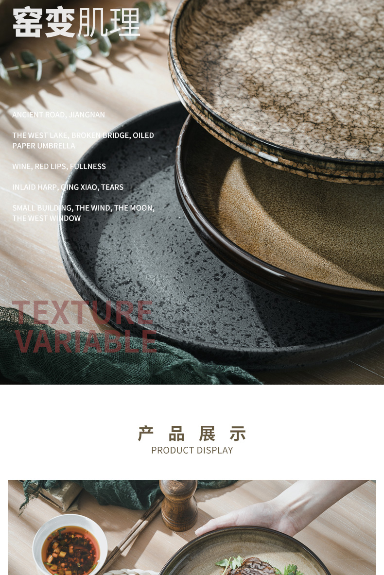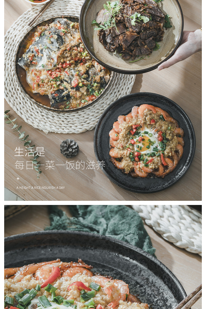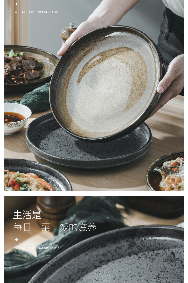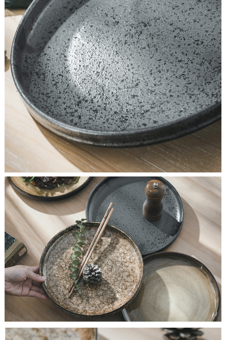 創作陶器ディナープレート、窯焼き和食皿、家庭用サラダ洋食プレート、ステーキプレート、食器、わびさび