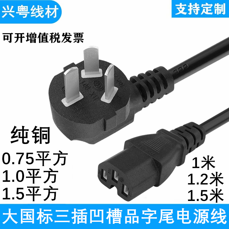 国標三差凹溝品字尾電源コード10a三穴三芯炊飯器ディスプレイ電源プラグ線