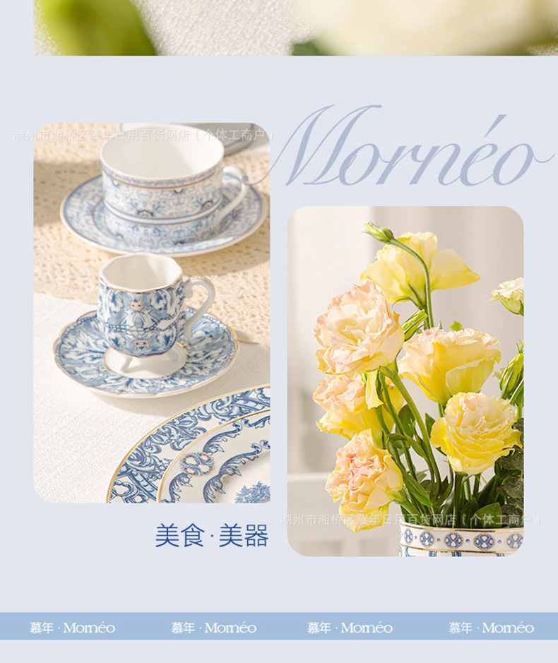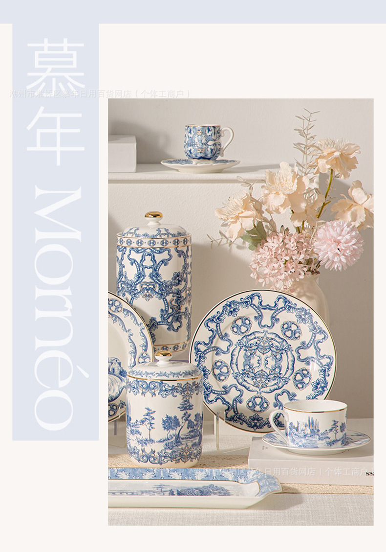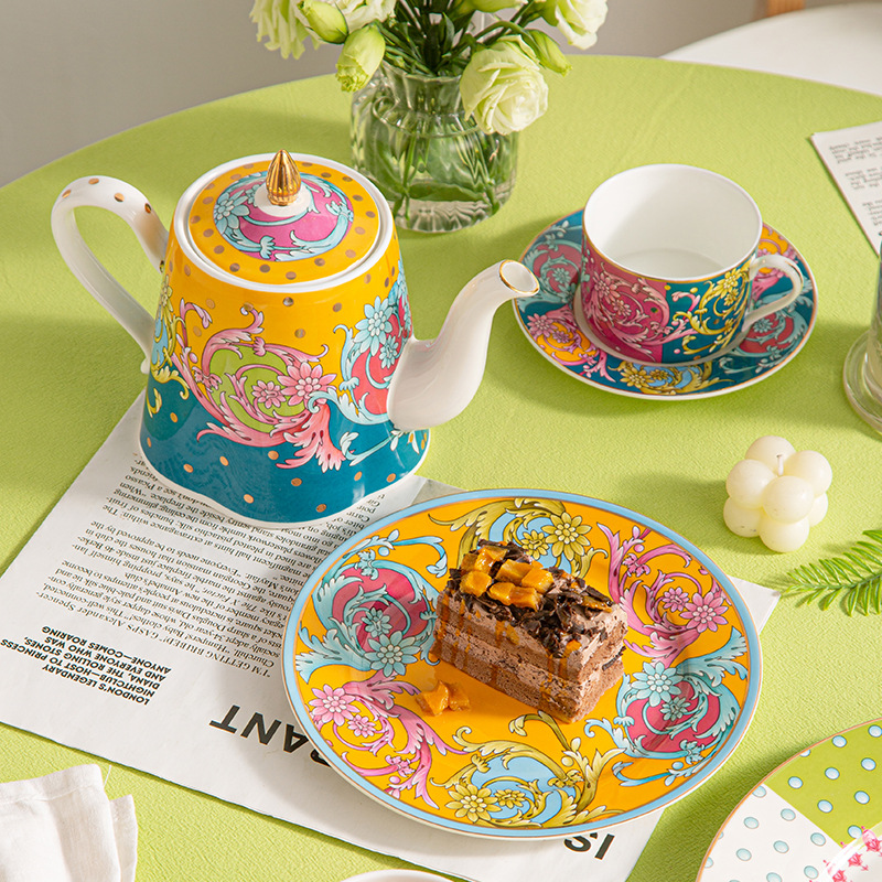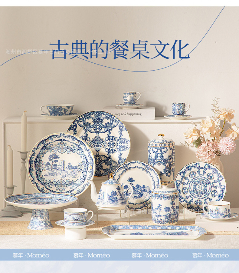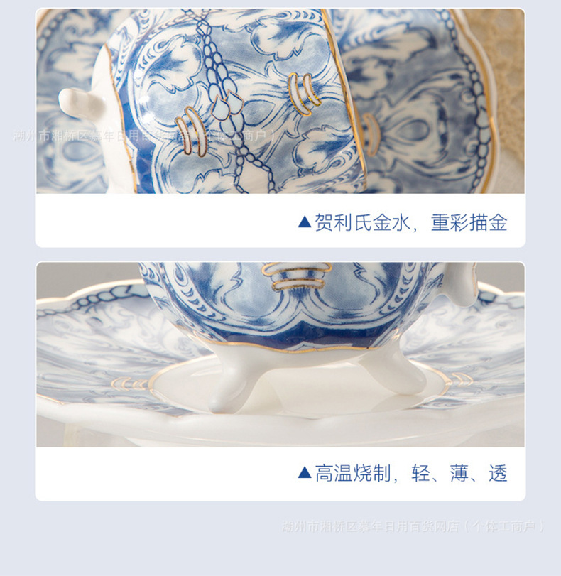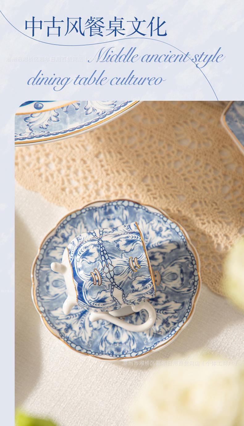 海外向け英国風青花磁器コーヒーカップ&ソーサーセット、セラミックレトロヨーロピアンスタイル、軽贅沢アフタヌーンティーカップ&ティーポット