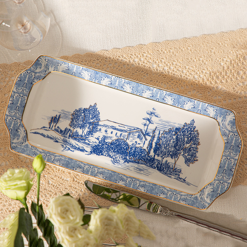 欧式土耳其风古典青花描金长方蛋糕盘酒店餐厅水果盘咖啡店甜品盘