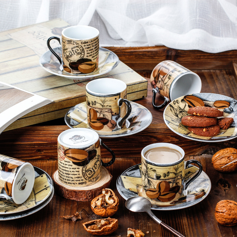 レトロなエスプレッソカップセットヨーロッパ式コーヒーカップセット特濃トランペットコーヒーカップセットミニカップセット