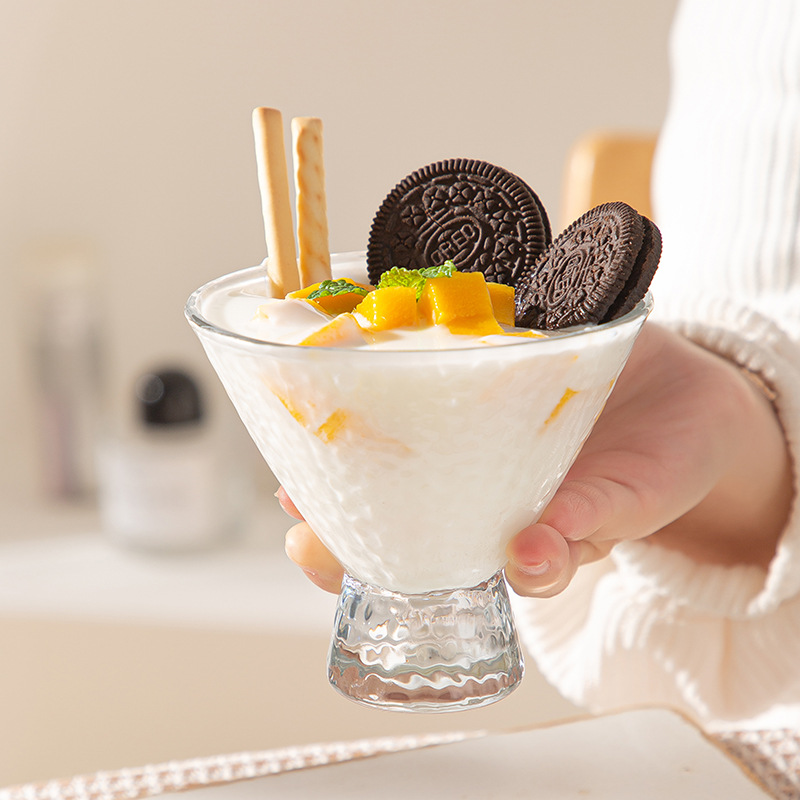 锤纹冰淇淋玻璃杯子家用甜品酸奶水果沙拉碗冰激凌杯甜品杯奶昔