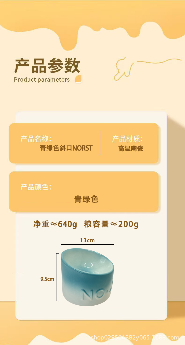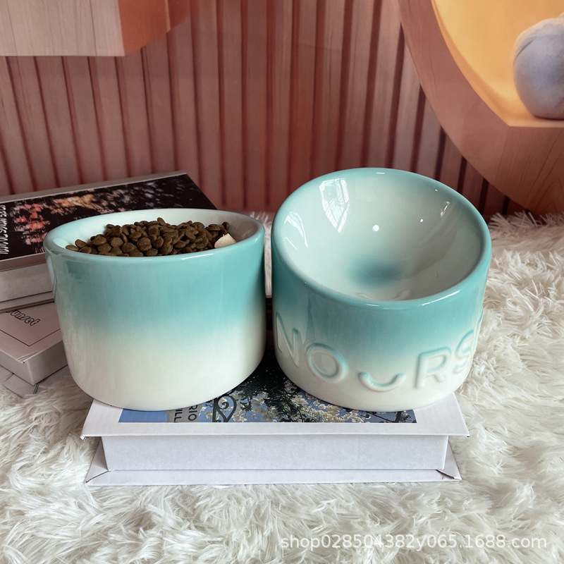 セラミック猫ボウル、猫ボウル、背の高い斜めの緑色の犬ボウル、ペットボウル、シンプルでクリエイティブなグラデーションカラーのウサギボウル