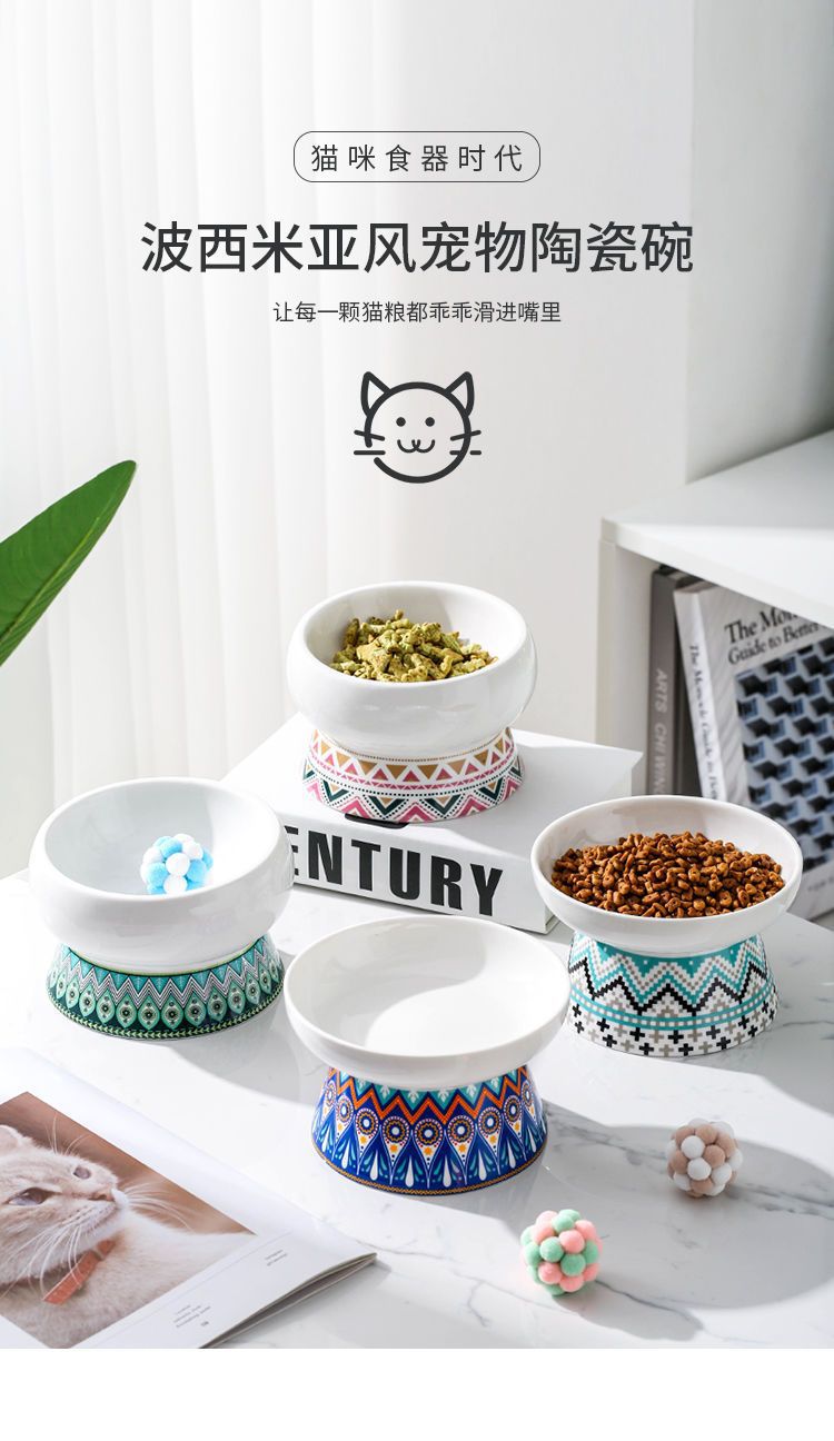 頸椎を保護するハイレッグ付きセラミック猫ボウル、猫ボウル、猫ボウル、猫ボウル、水飲みボウル、ペットスナックセラミックボウル