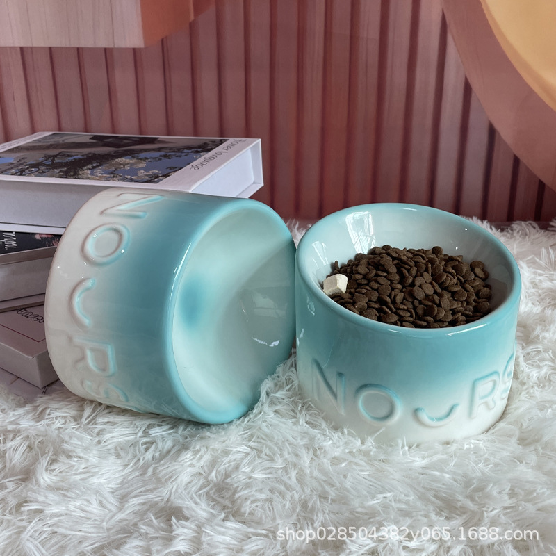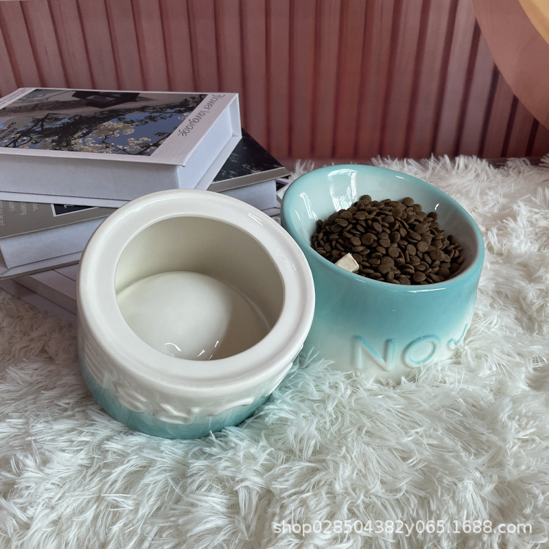 贝果猫碗宠物陶瓷餐前饭碗小猫咪粮碗防打翻罐头碗定logo印字
