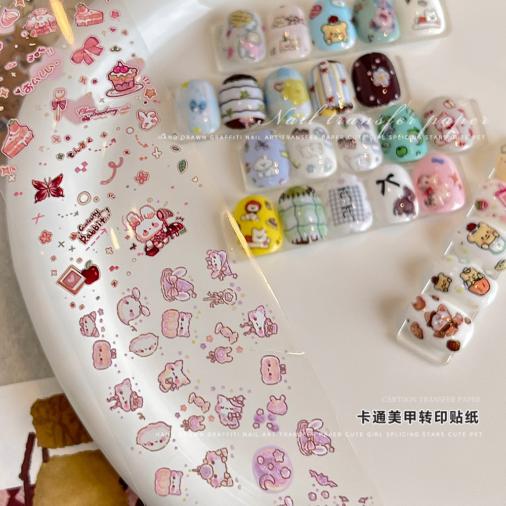 インターネットセレブ人気ネイルアート転写ステッカー DIY ソフトかわいい落書きクマリボンステッカー漫画ネイルアート転写紙