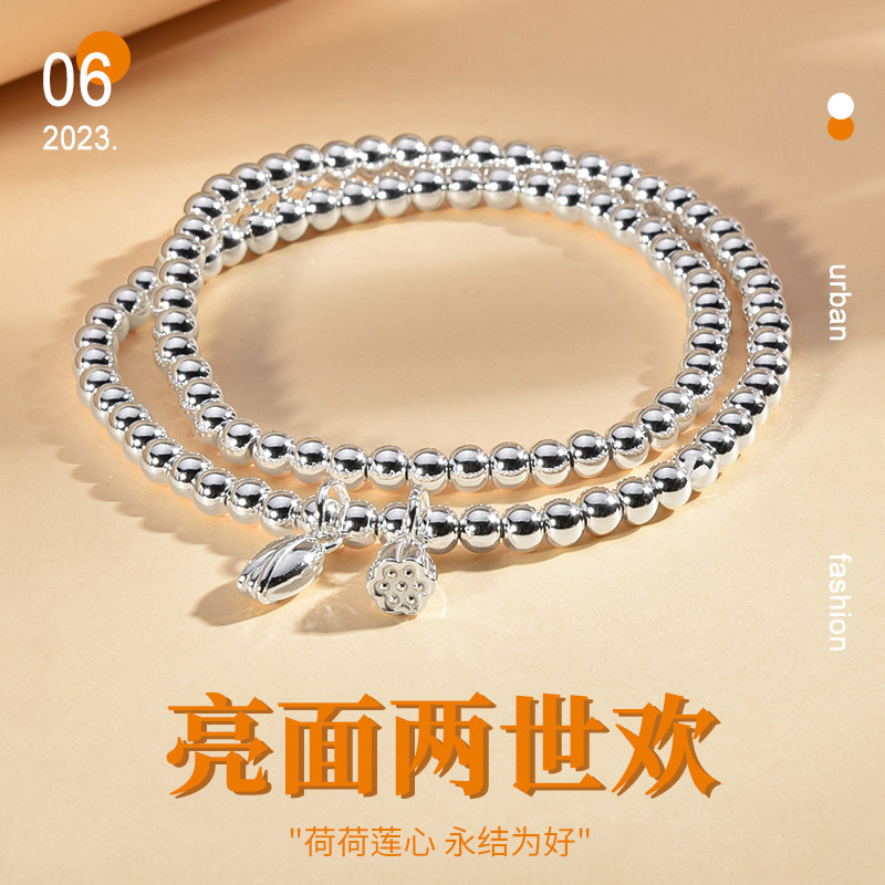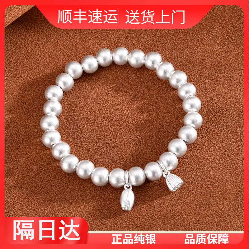 9999純銀ブレスレット男女スタイル国風シンプル数珠古法二世歓蓮蓬足銀手串誕生日プレゼント
