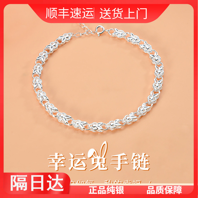足銀999純銀のウサギのブレスレットの女子学生の幸運はウサギの本命の年を萌えます。