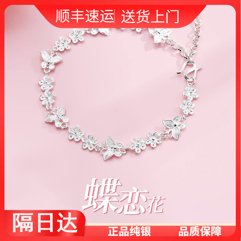 S 90足の銀の花輪の蝶のブレスレットの女性の軽豪華な小さい大衆の精巧な純銀の手の縄の誕生日の贈り物の親友のアクセサリー