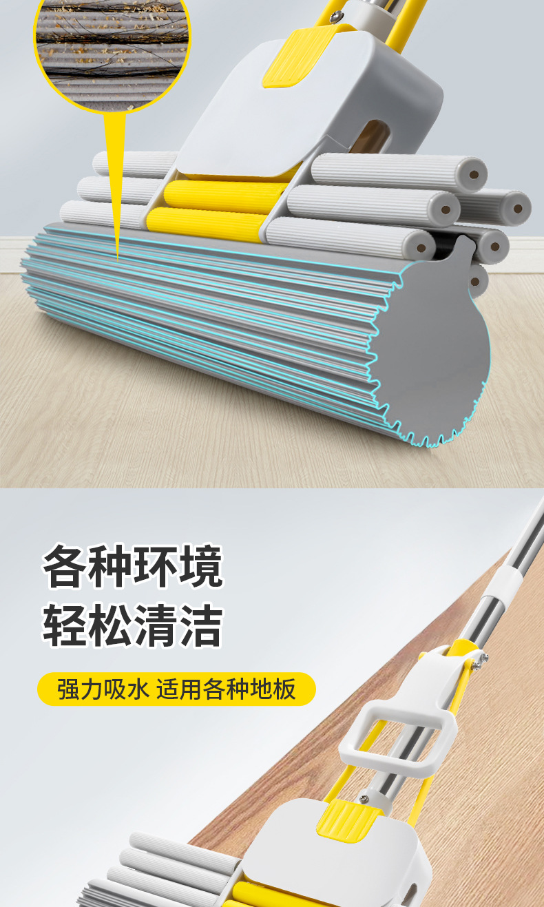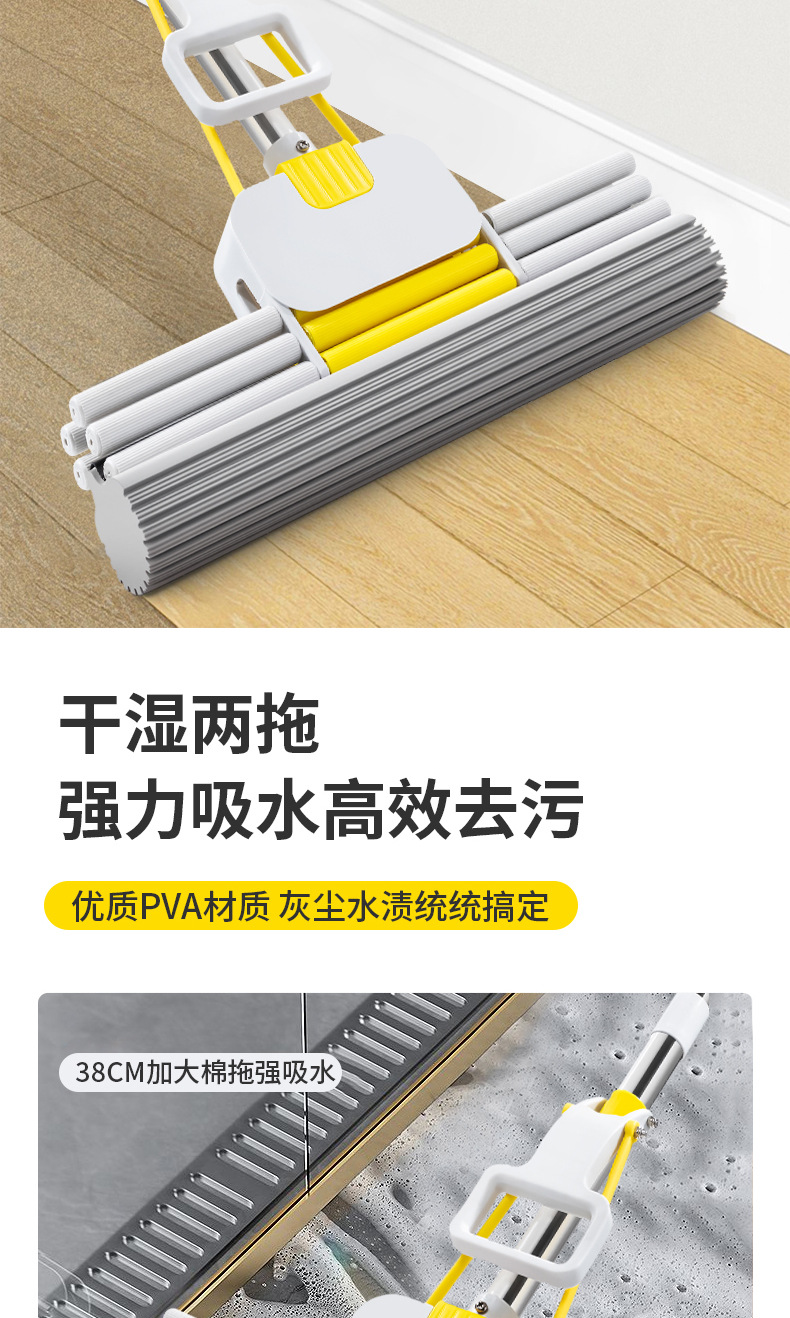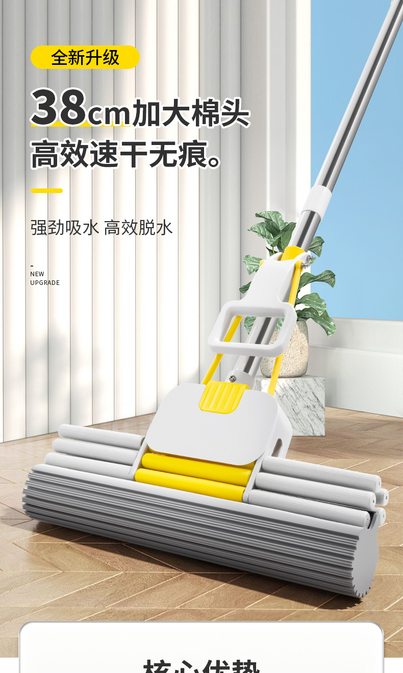 スポンジモップローラータイプ幅広で手洗い不要の家庭用怠け者吸水性コロイドモップ家庭用ワンモップ