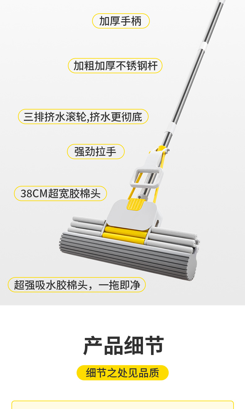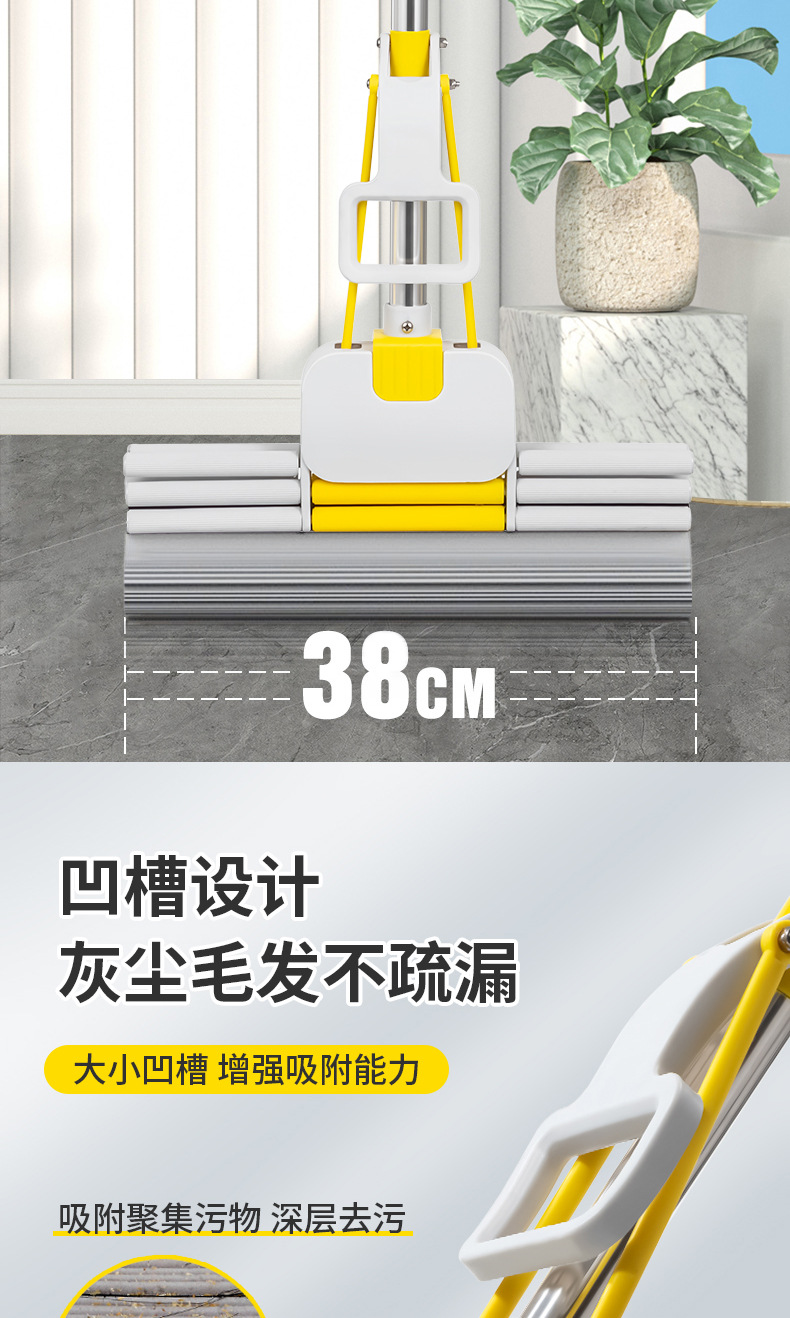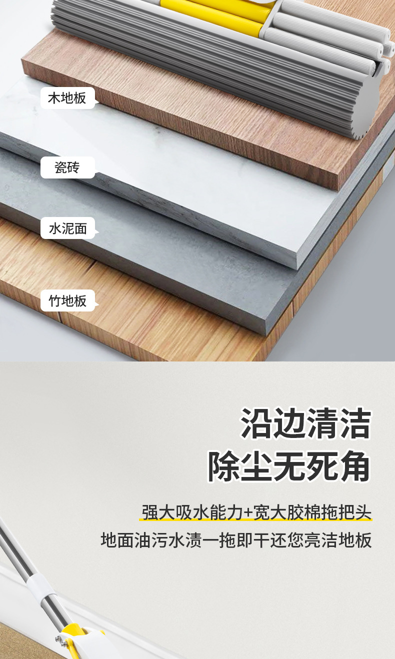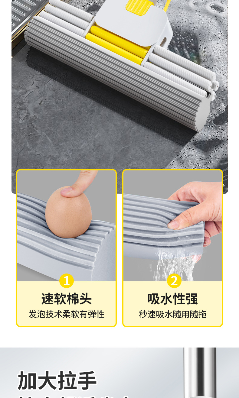 スポンジモップローラータイプ幅広で手洗い不要の家庭用怠け者吸水性コロイドモップ家庭用ワンモップ