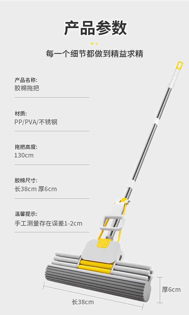 硬くならない幅広・大型スポンジモップ、手洗い不要、家庭用怠け者用吸水性コロイドモップ、家庭用ワンモップ