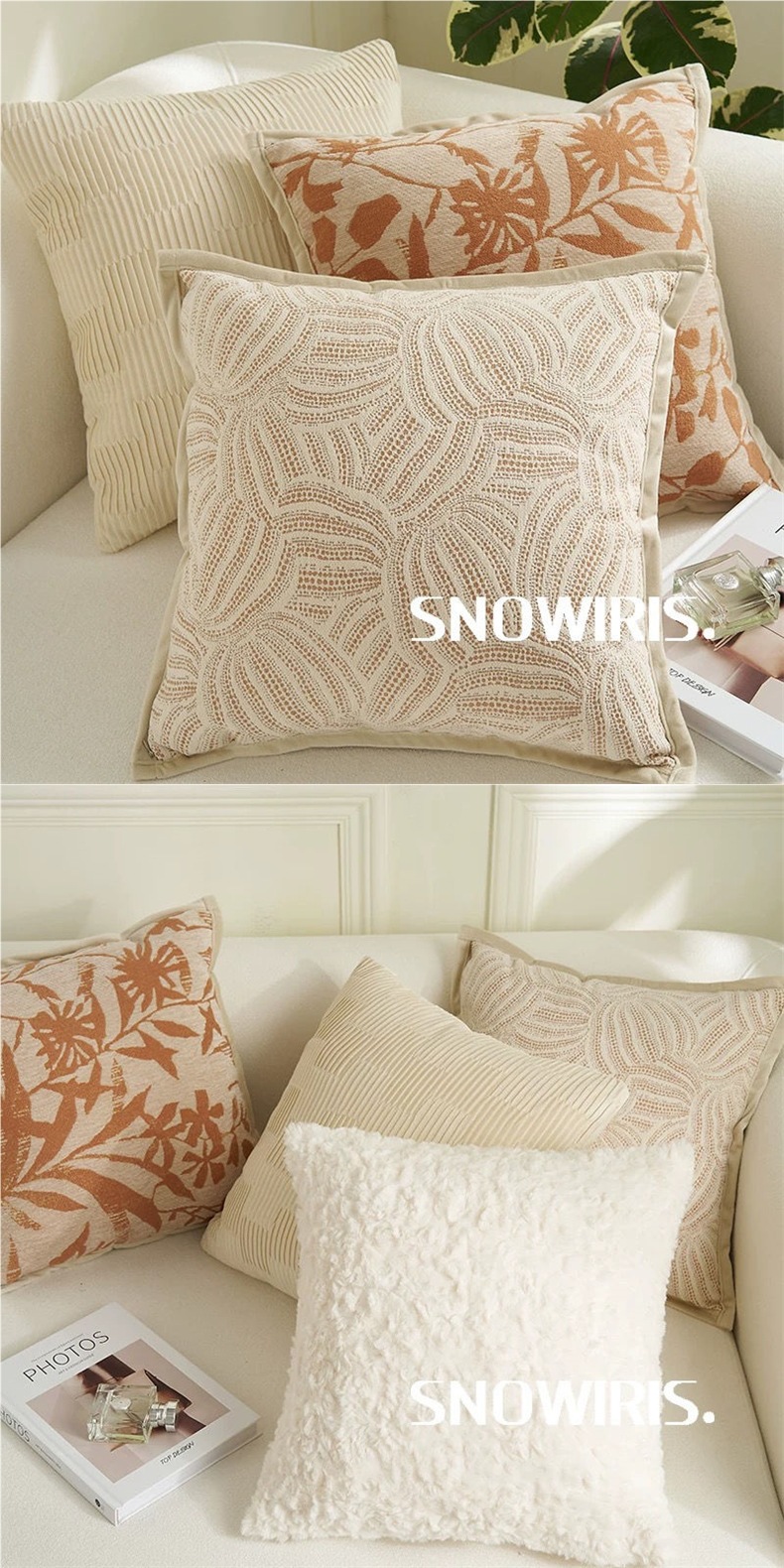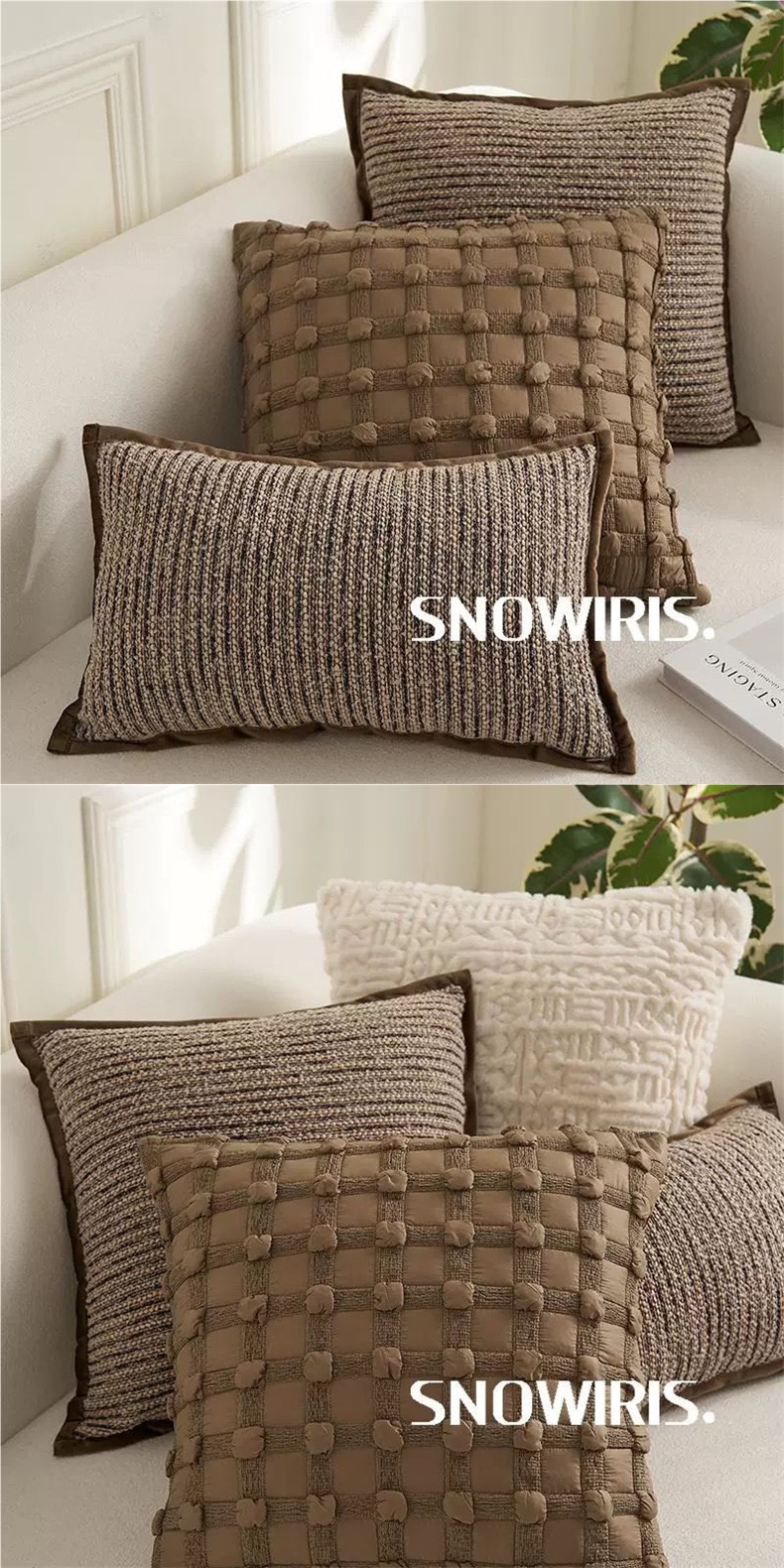 奶油色复古风打结抱枕套沙发床棕色床腰靠枕靠垫含芯飘窗