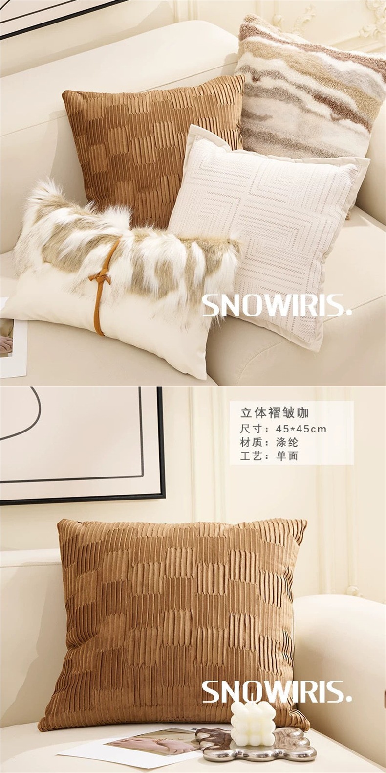 棕色中古奶油风抱枕轻奢家用客厅沙发靠枕腰枕靠背床头靠垫供应链