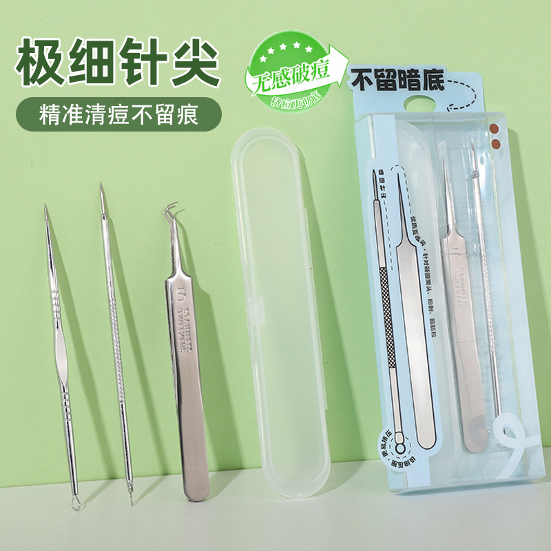 多功能粉刺针组合套装不锈钢塑料柄黑头粉刺针学生女士美妆工具