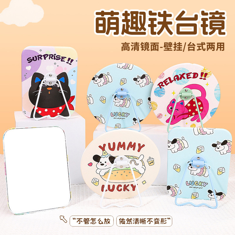 かわいい漫画pu卓上ミラー学生レディース自宅寮化粧ミラー楽しい时间鉄ブラケットデスクトップ片面ミラー