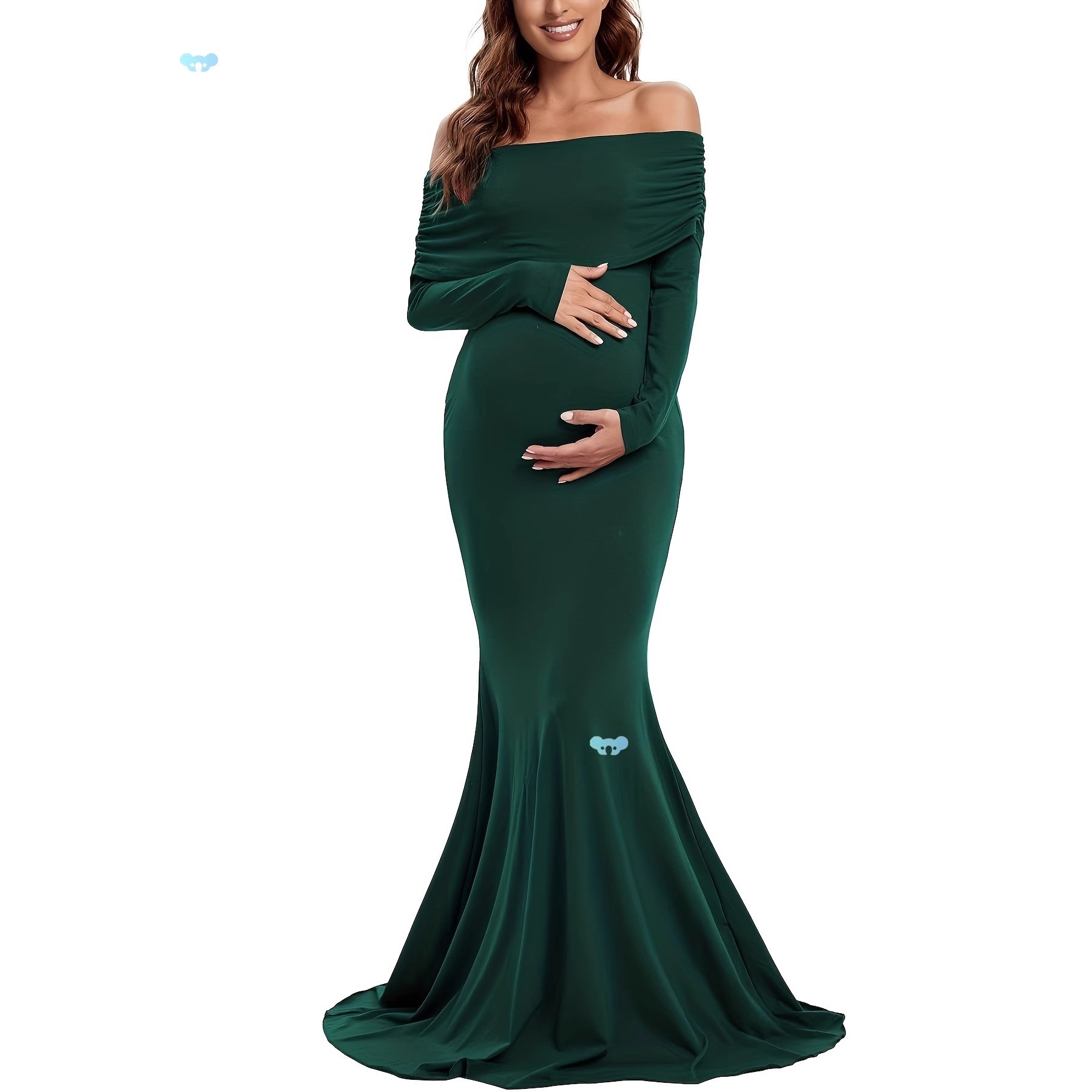 エレガントなオフショルダー長袖シャーリングマタニティドレスクロスボーダー