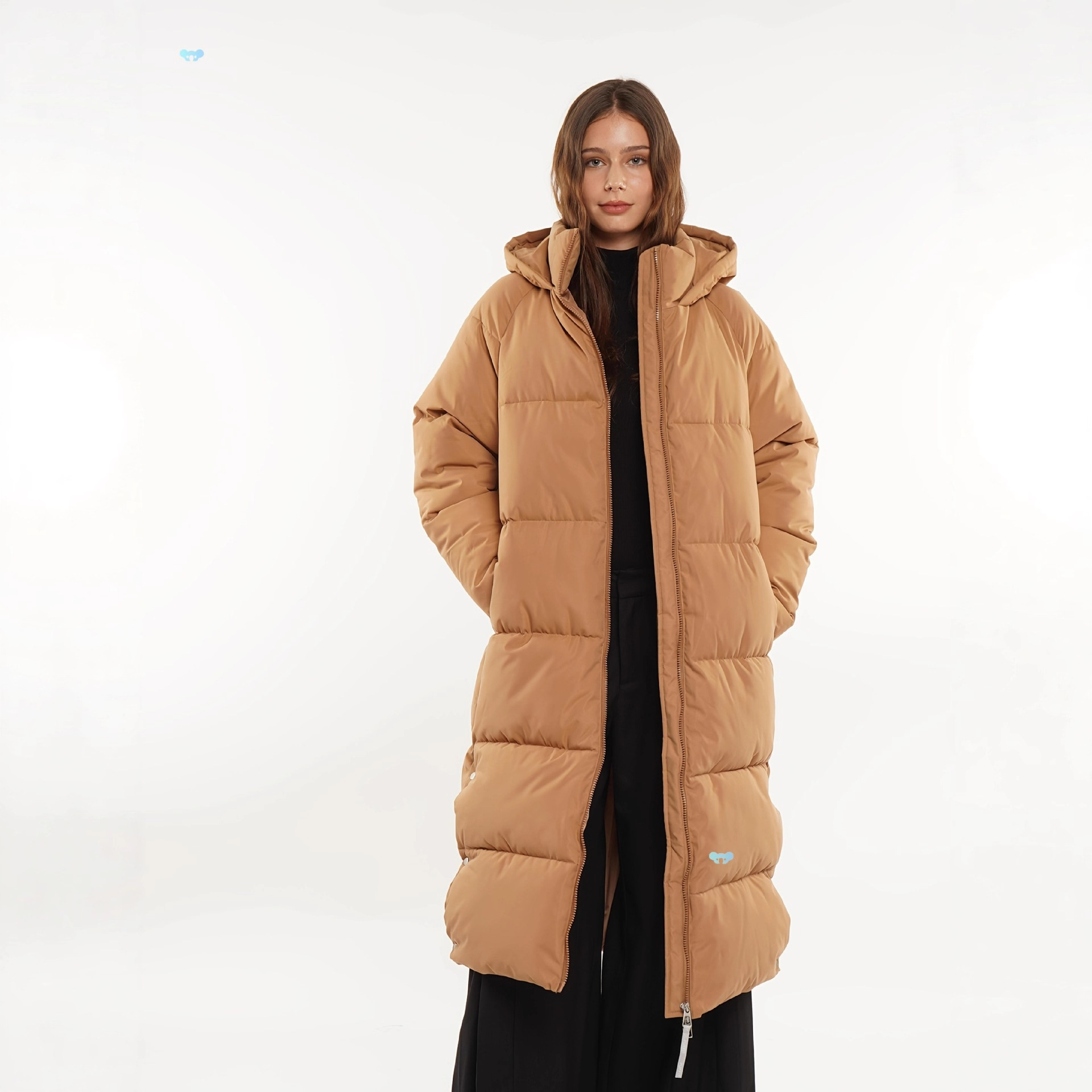 特大ロング丈ダブルオープンジップフード付き防水ダウンジャケット