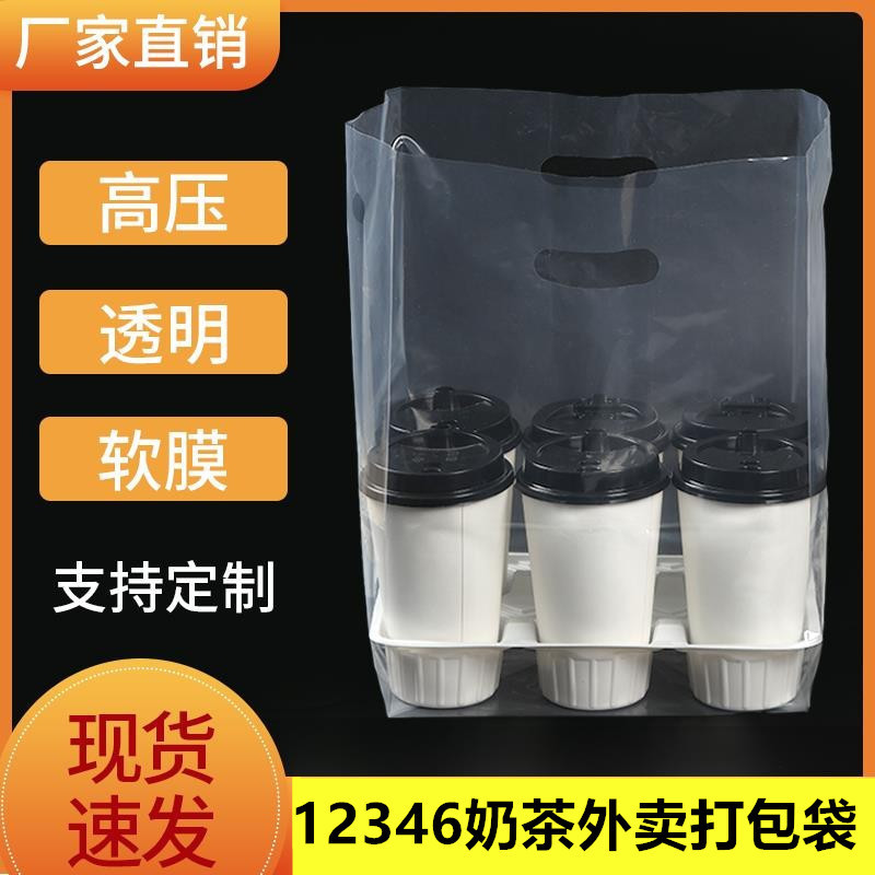 ミルクティーショップ包装袋高透明使い捨て飲料テイクアウトポータブルプラスチックフラット口シングル、ダブル、4、6カップバッグ
