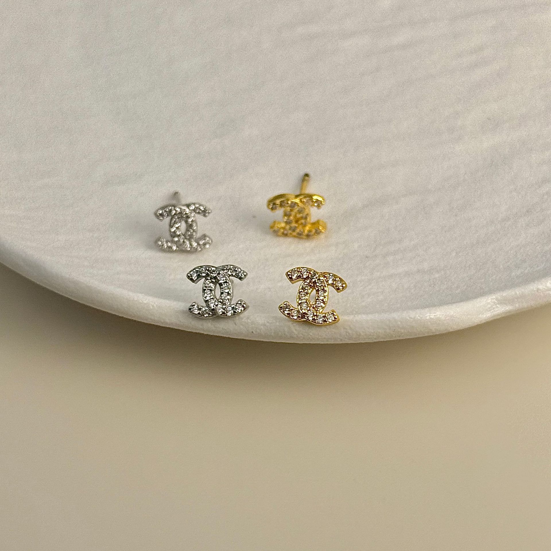 法式热销款镶锆石字母双C简约设计轻奢潮流高级感满钻小想法耳钉