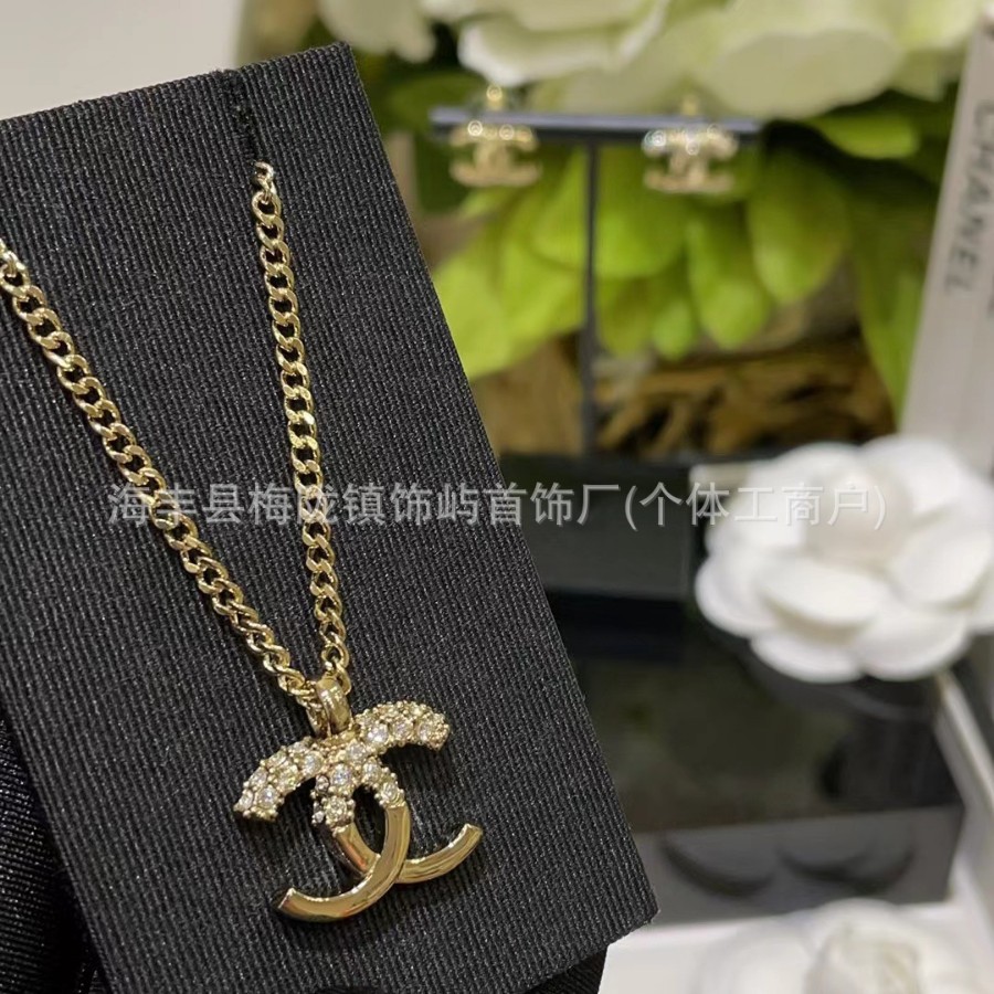 起爆金 [小香風] ダブルcネックレス女性用金メッキ軽贅沢小衆アルファベット気質デザインins閨蜜鎖骨鎖