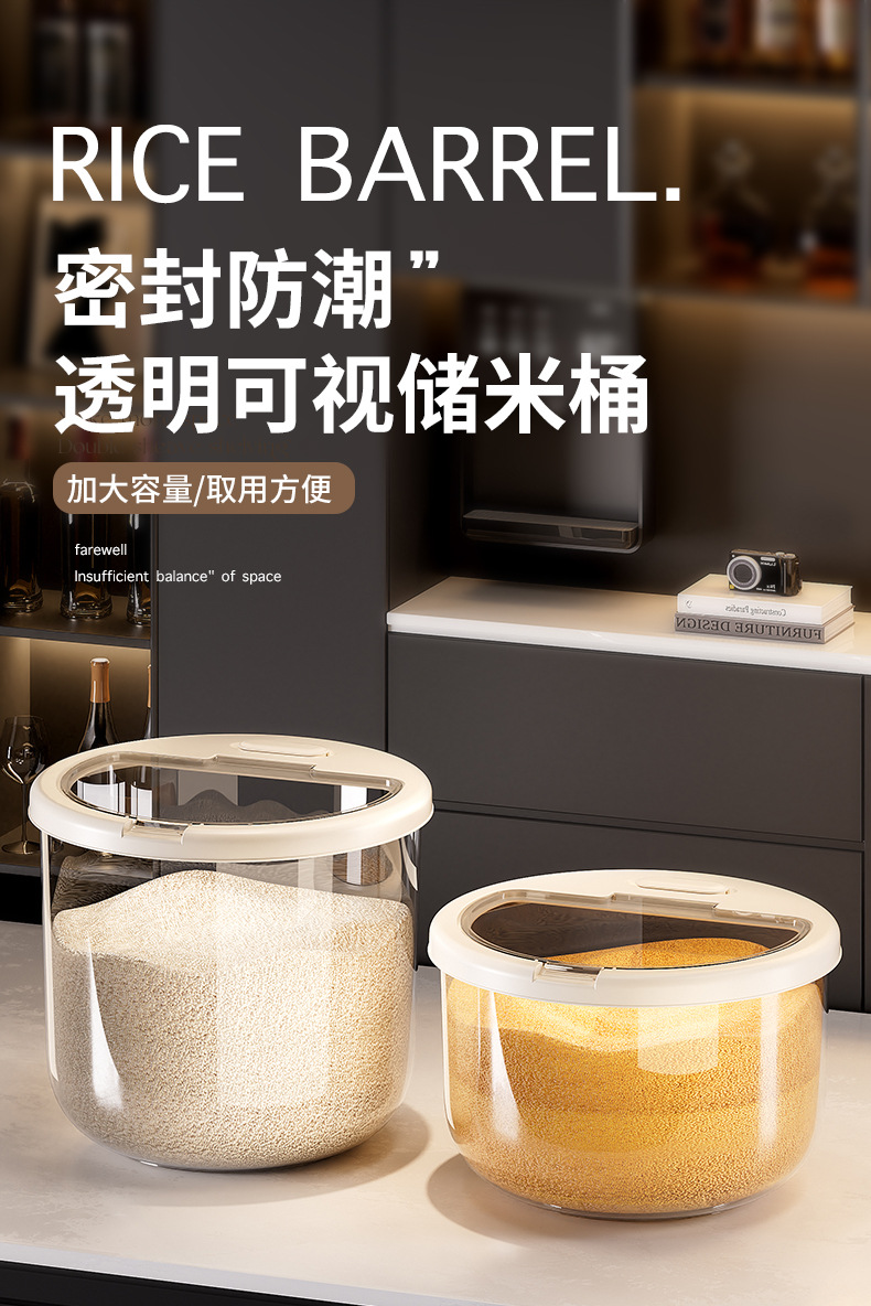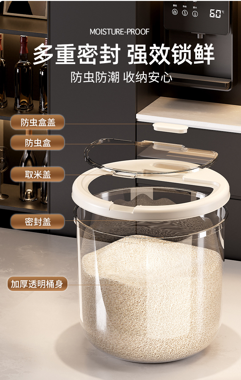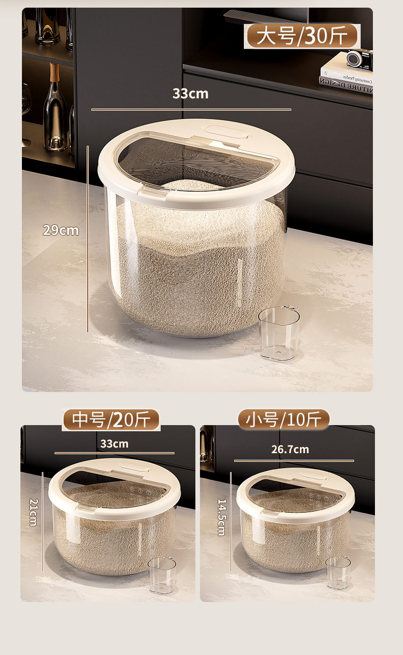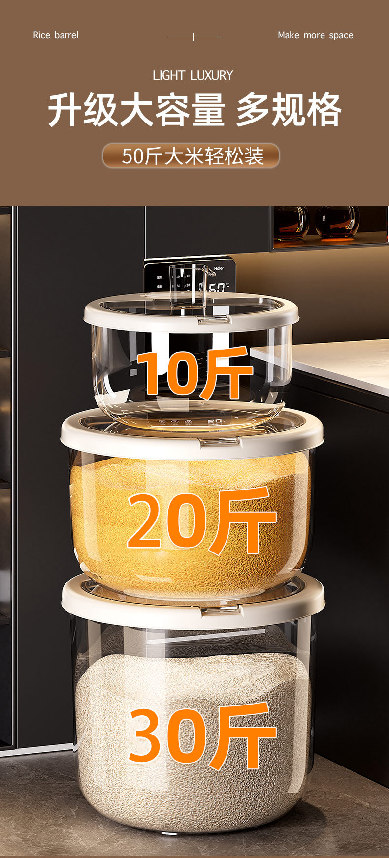 丸型家庭用米バケツ防虫防湿キッチン透明可視密封大容量穀物米収納ボックス米タンク