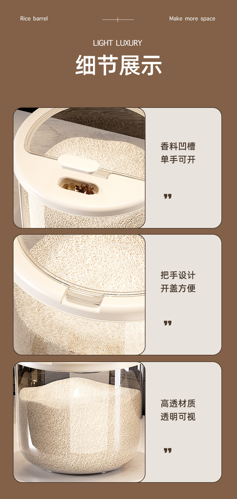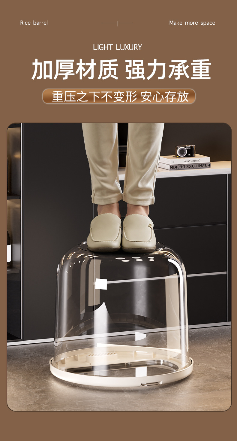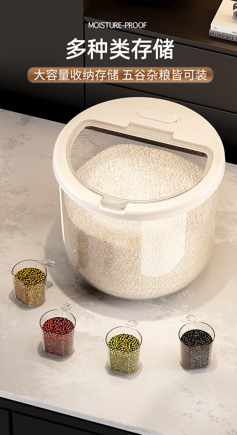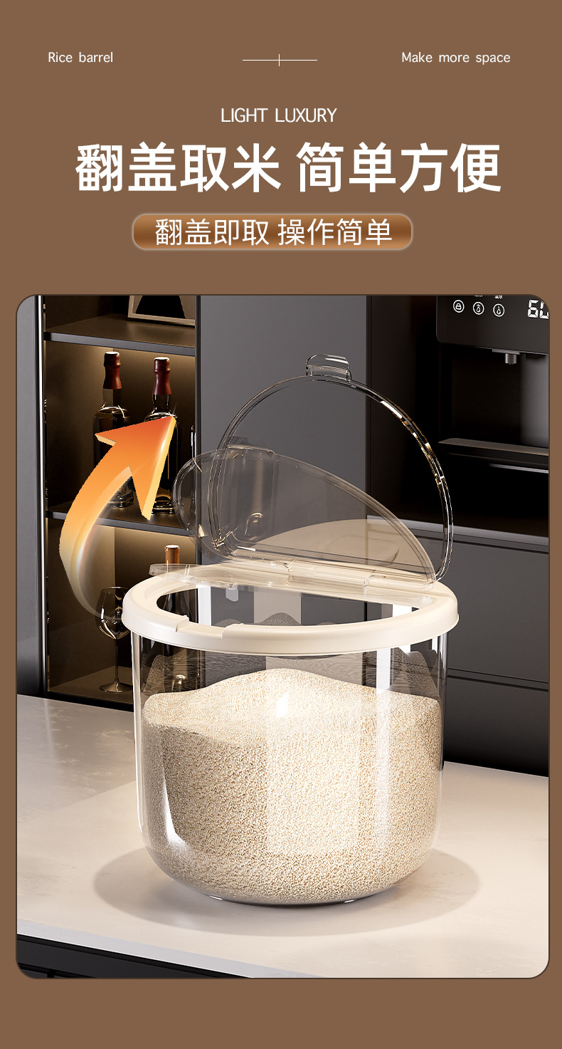 丸型家庭用米バケツ防虫防湿キッチン透明可視密封大容量穀物米収納ボックス米タンク