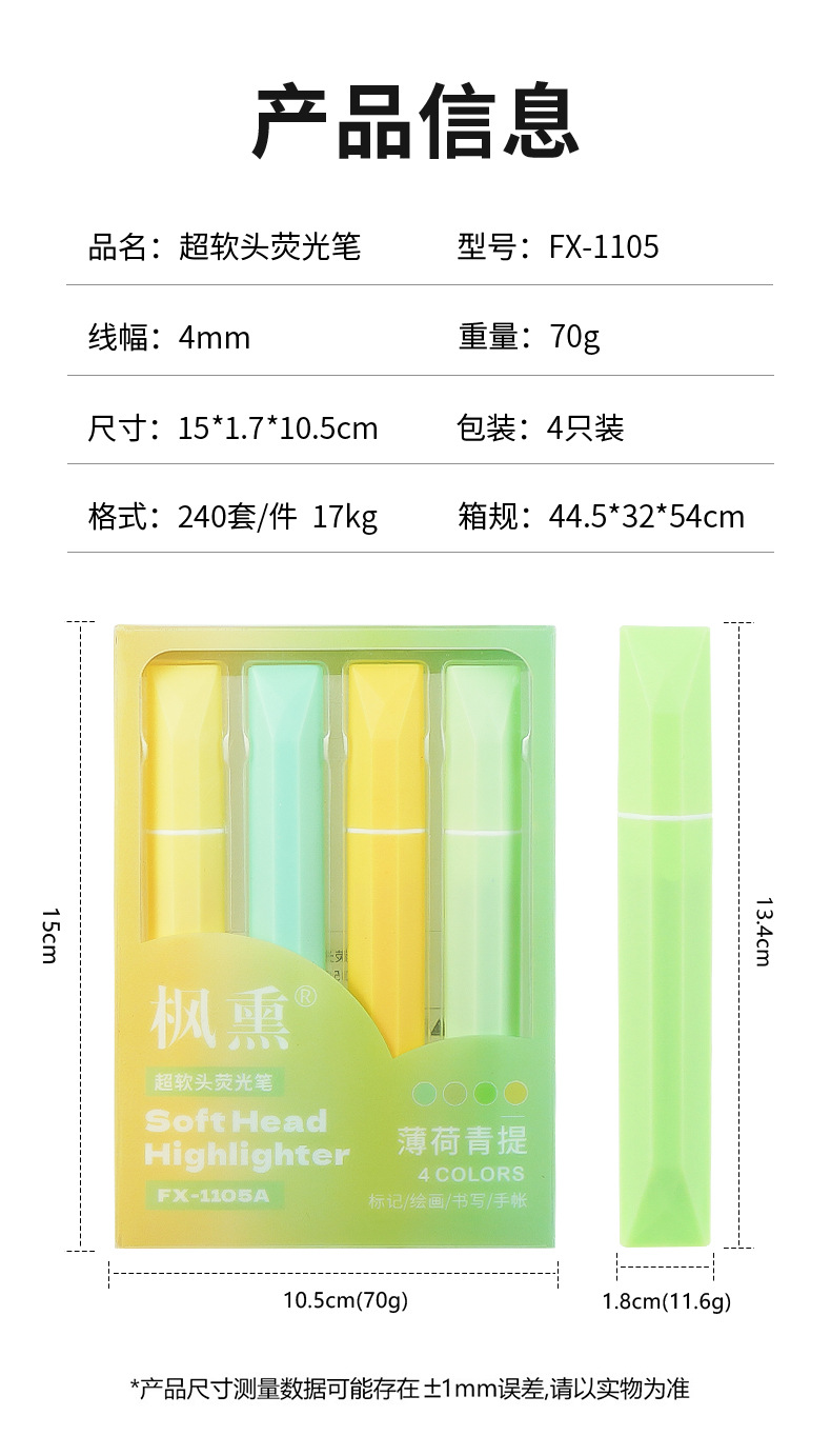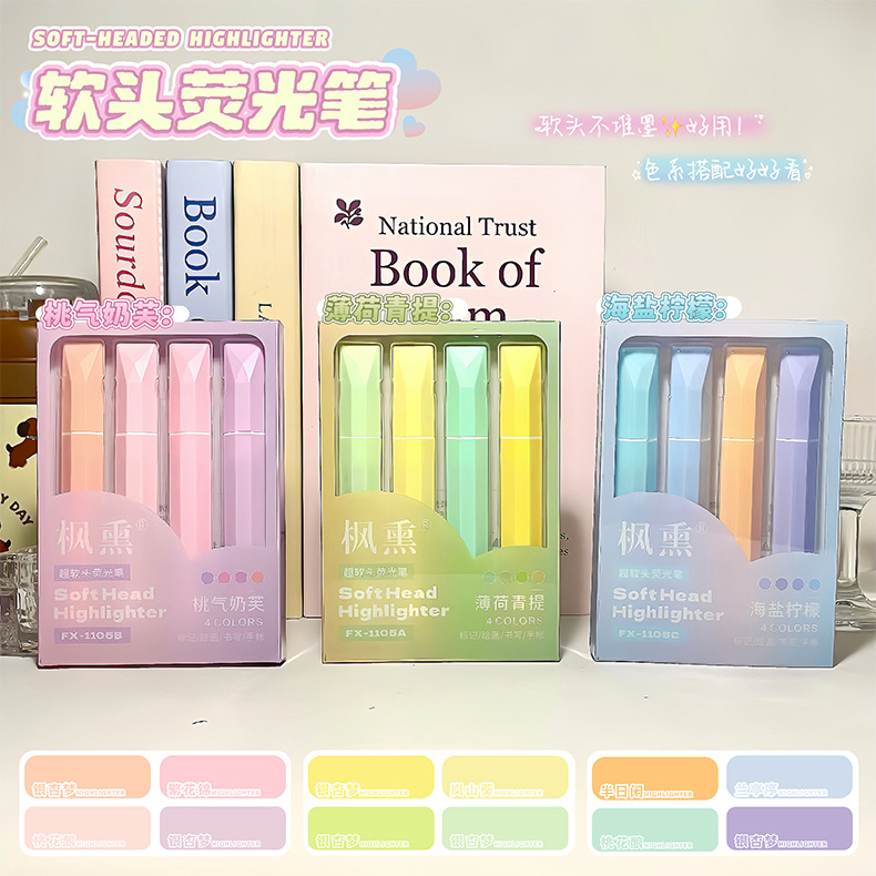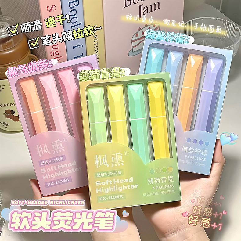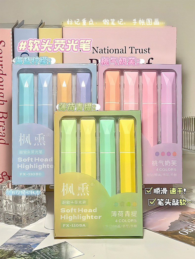 蛍光ペン高颜値保眼カラー画重点手帳ペン学生ソフトヘッドマーカー簡単絵画落書きペン