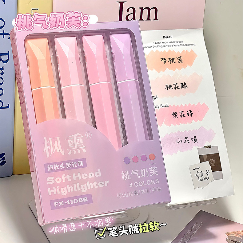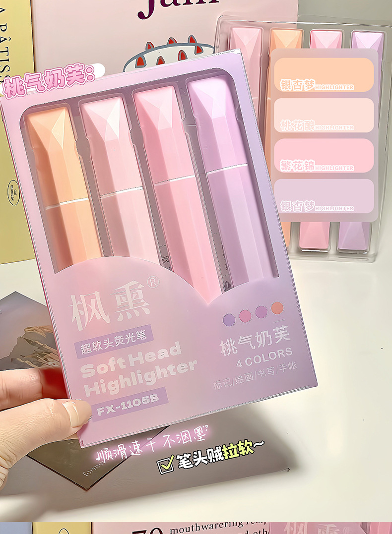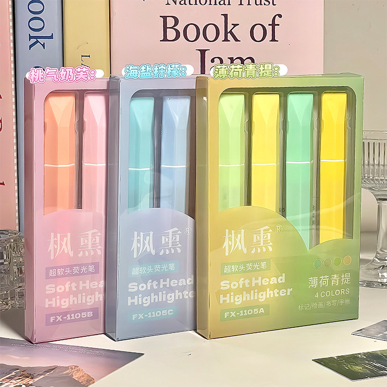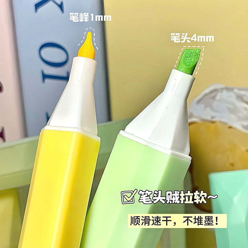 蛍光ペン スーパーソフトヘッドセット モランディ学生専用マーカーペン 高価値双頭カラー斜めマーカーペン