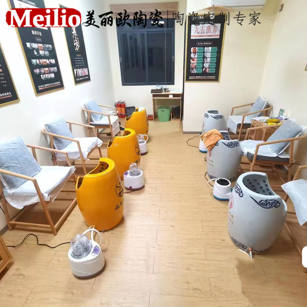陶瓷腿部足疗艾灸蒸脚缸熏蒸桶汗蒸磁樽熏蒸活瓷养生缸瓮