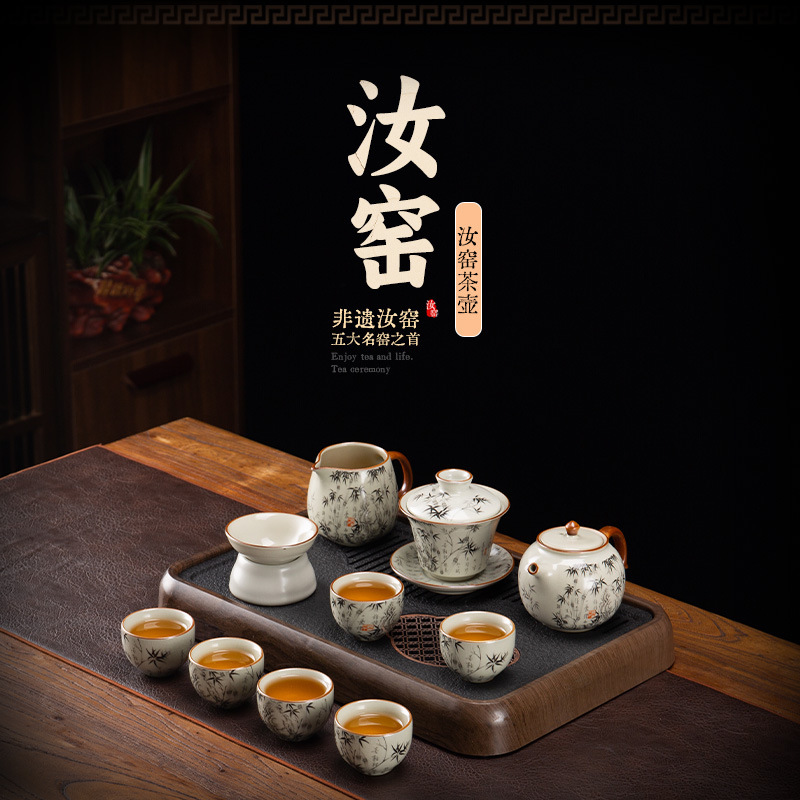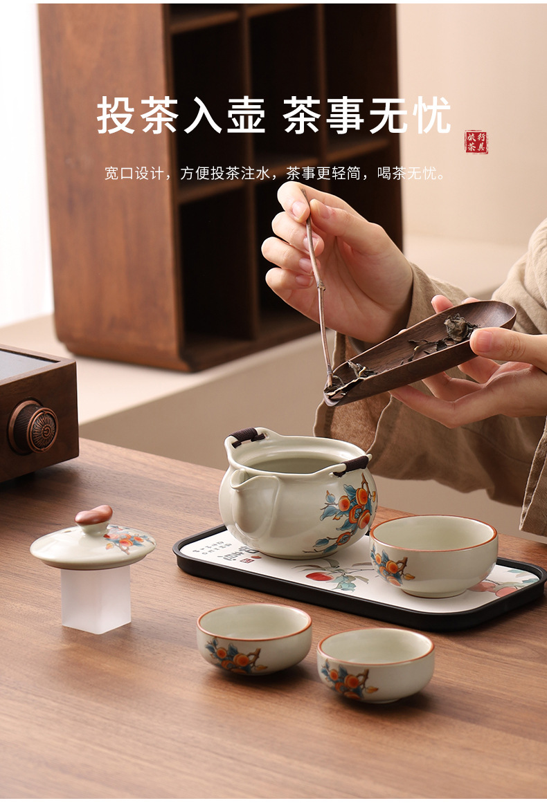 汝窯旅行茶道具一壺三杯便利式屋外陶磁器快客杯セットビジネス活動お土産