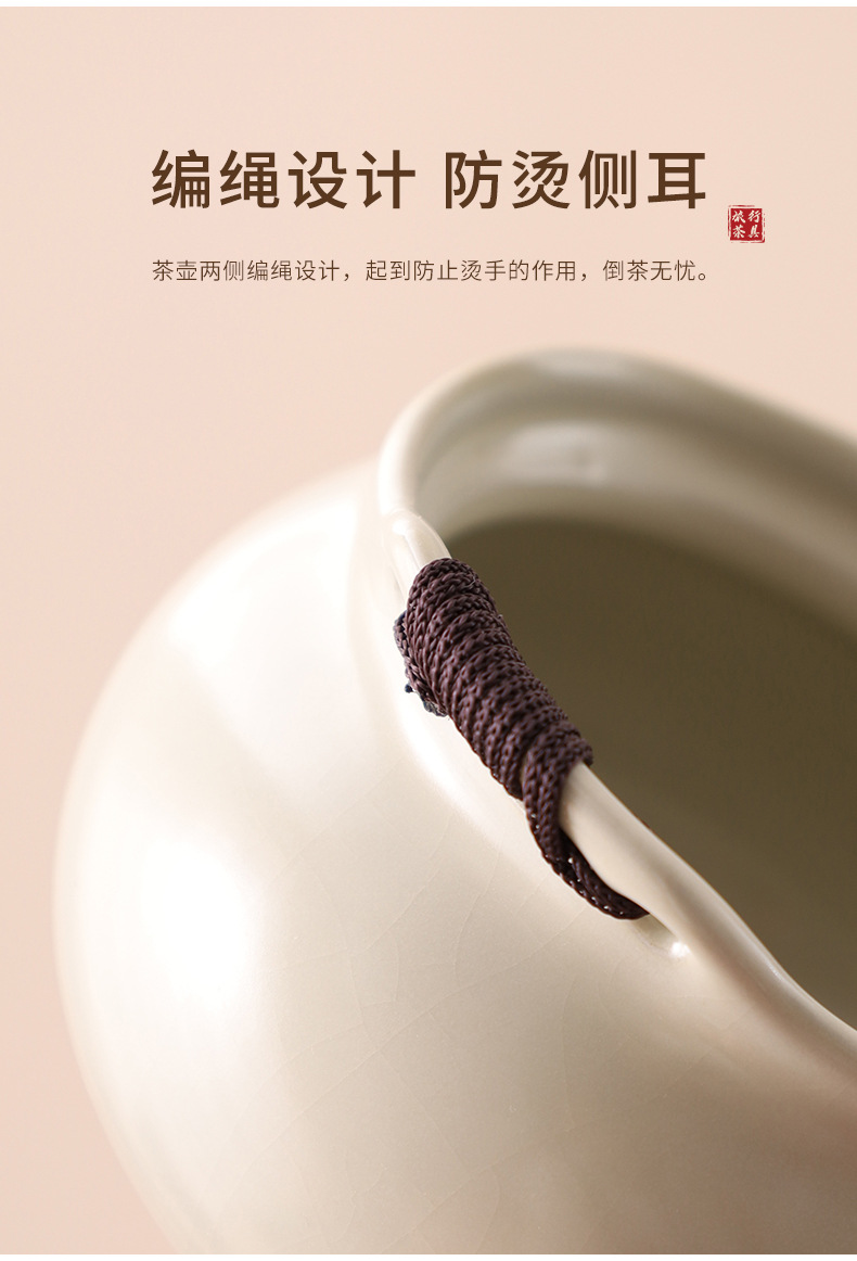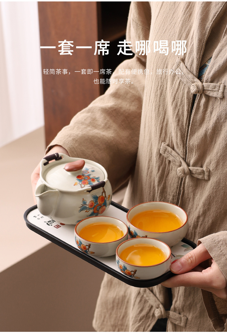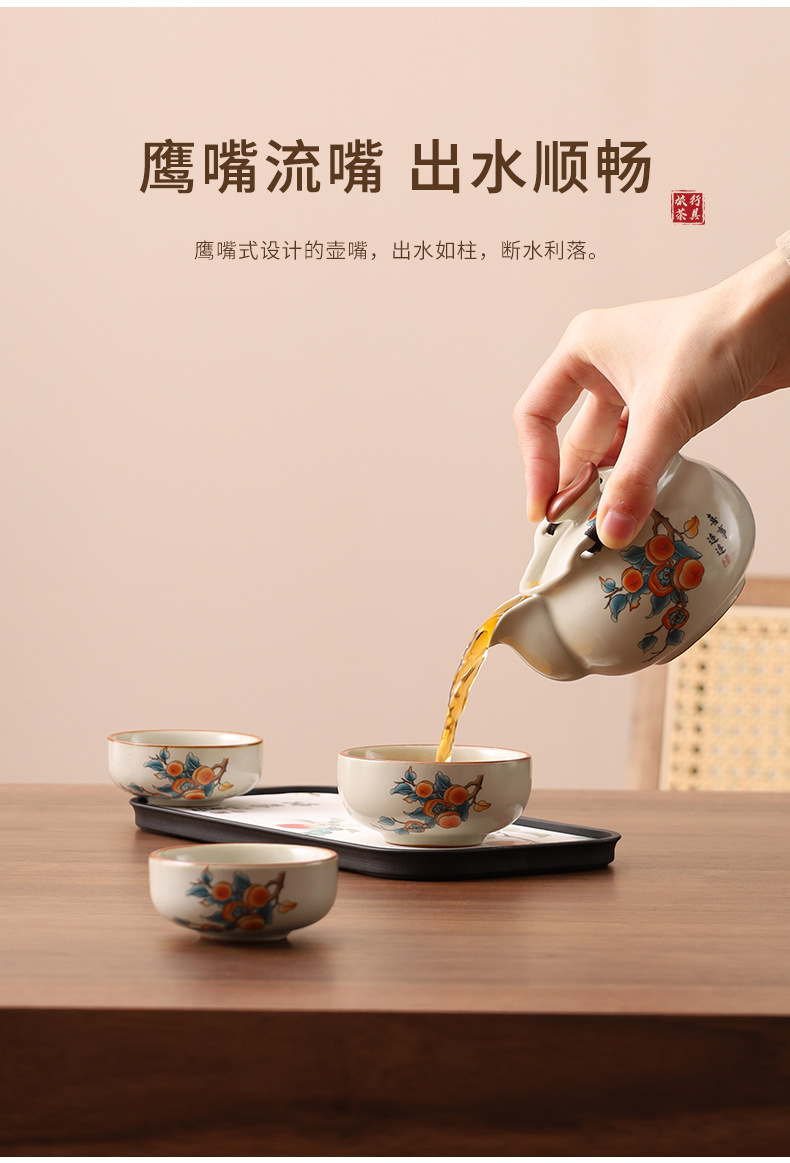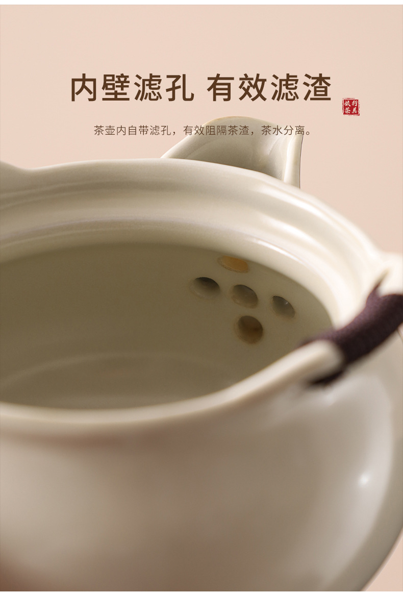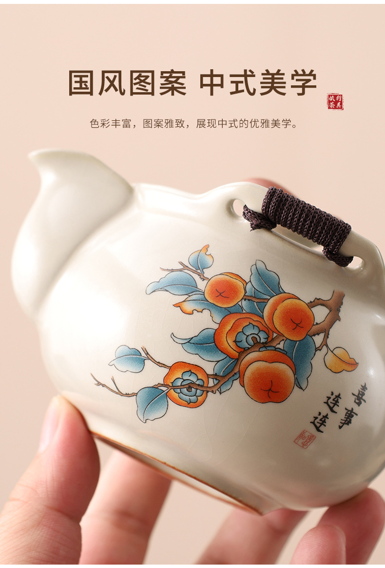 汝窯米黄旅行茶器セット一壺三杯携帯型青花陶磁器手掴み壺土産品卸売り