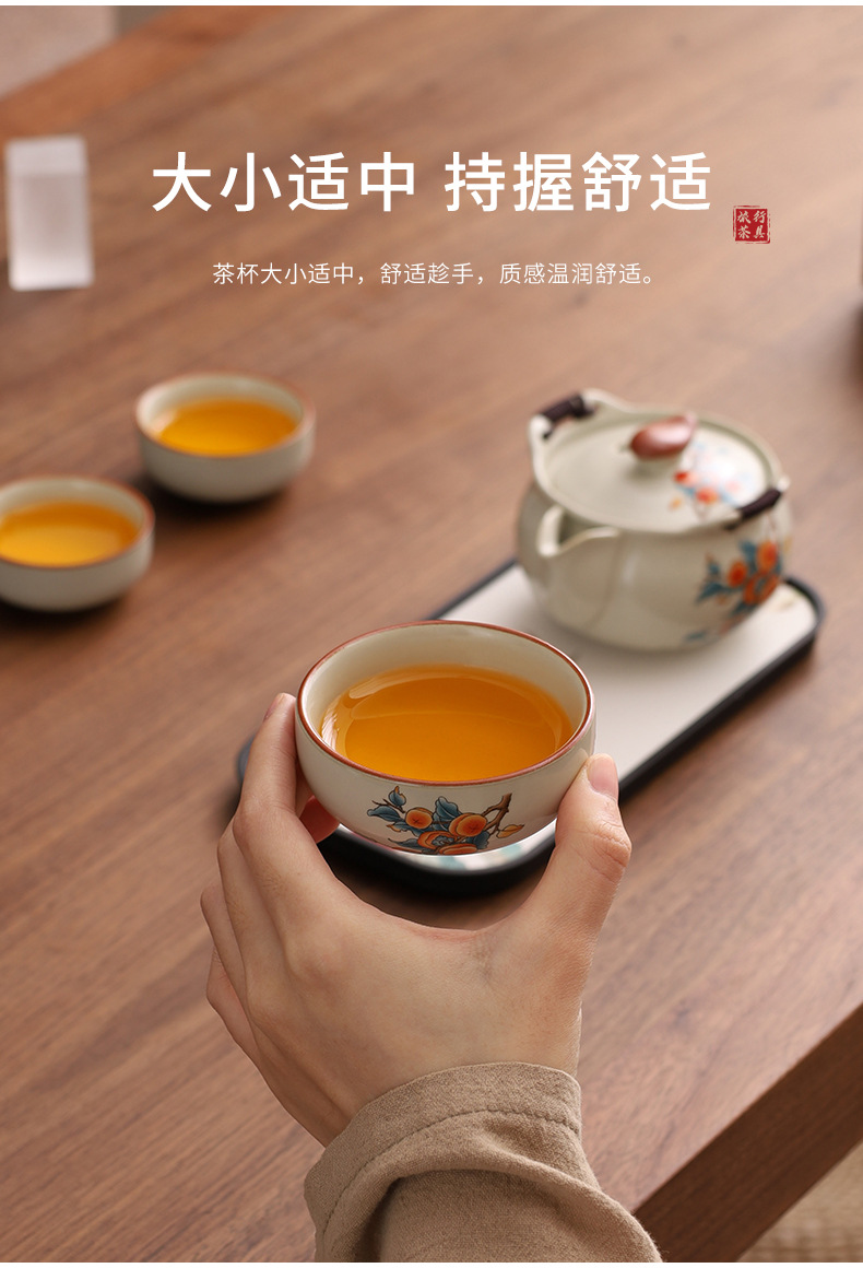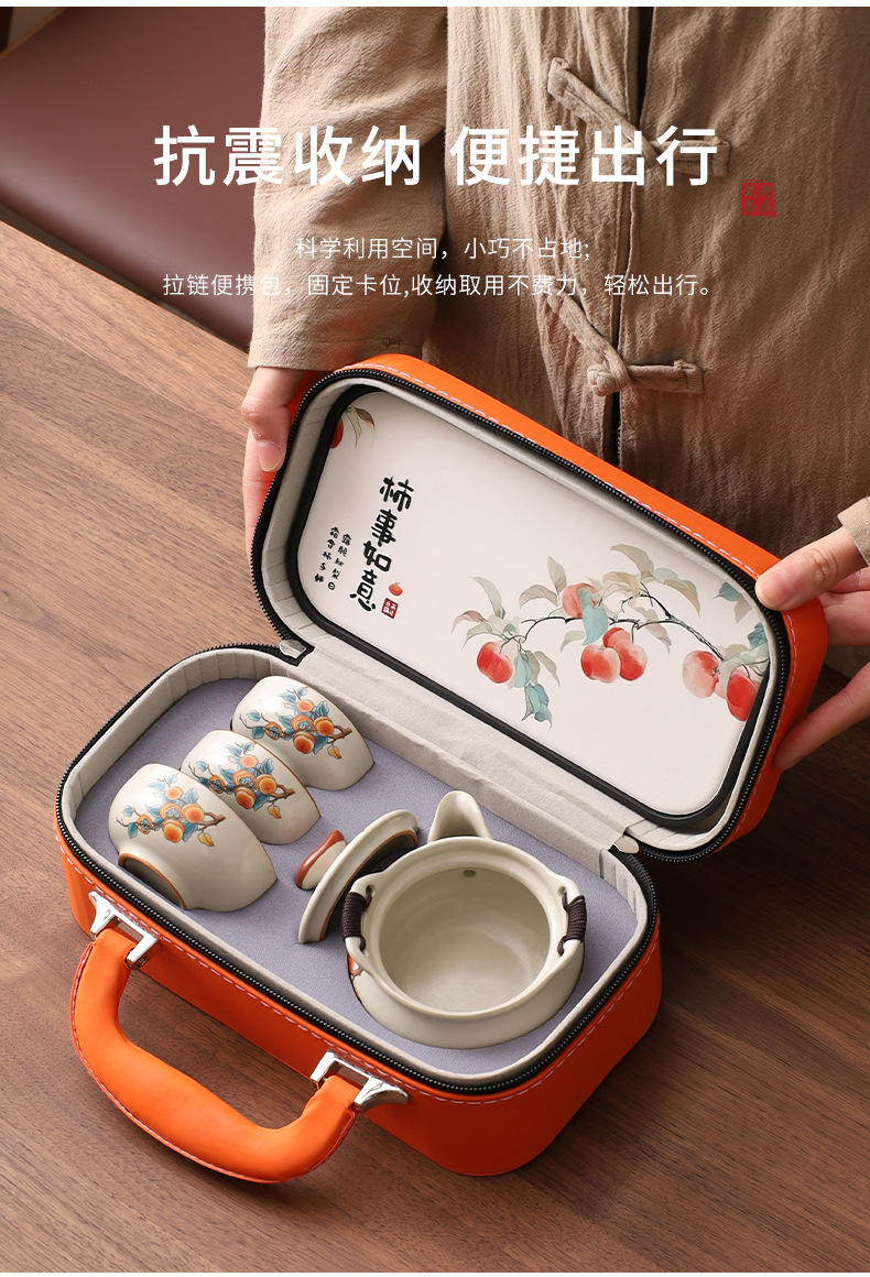 柿如意レザーバッグ ティートレイ付き,柿如意ティーポット 3 カップ付き,柿如意急須 公用カップ付き 3杯