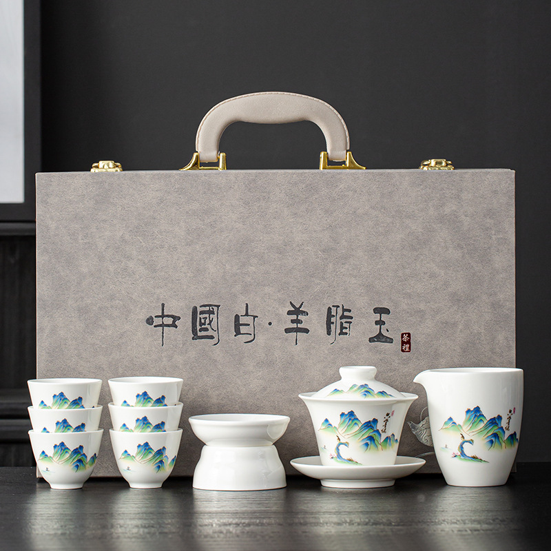 羊脂翡翠白磁蓋ボウルティーセットティーセット会社イベントギフト顧客卸売用お土産