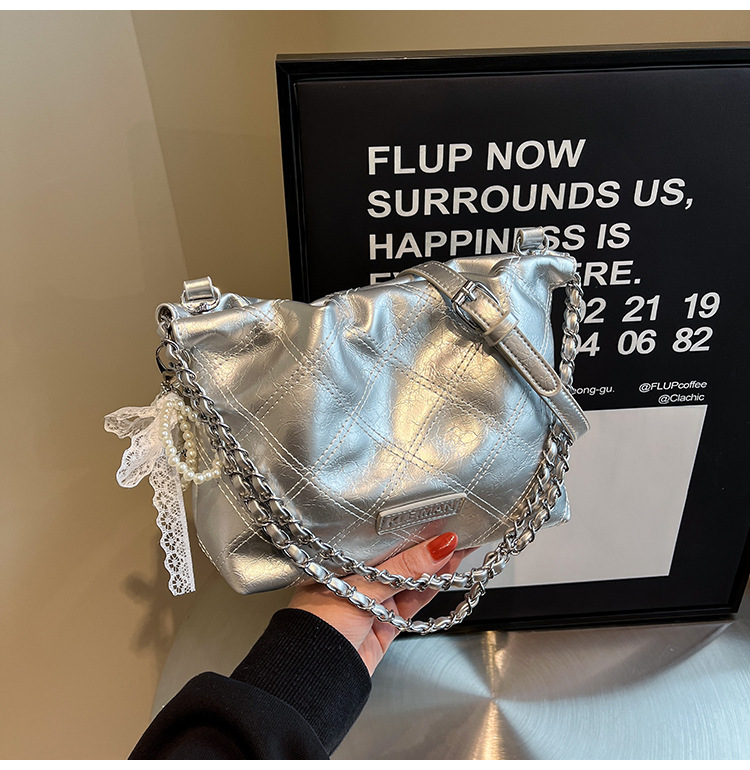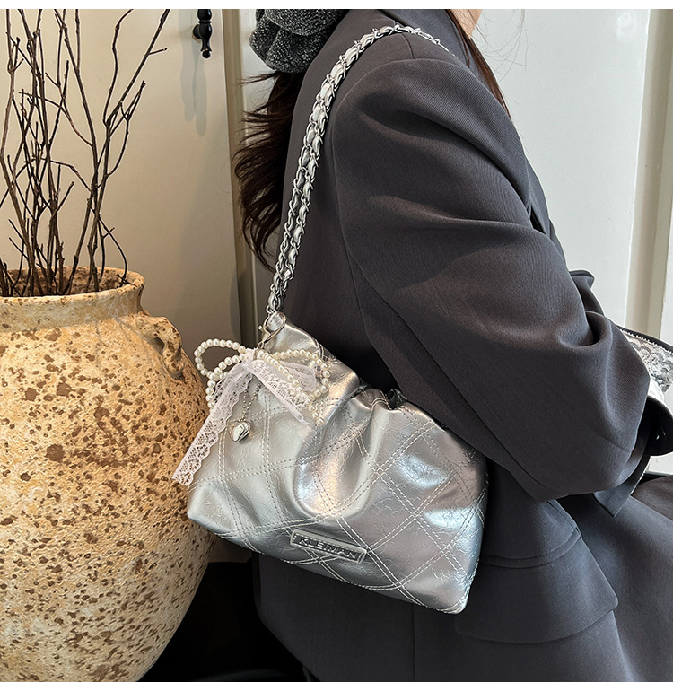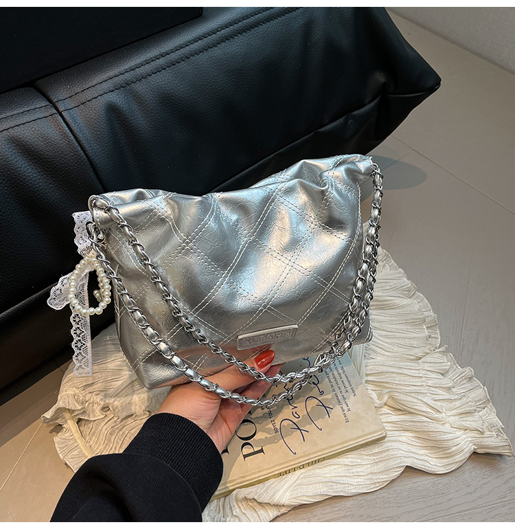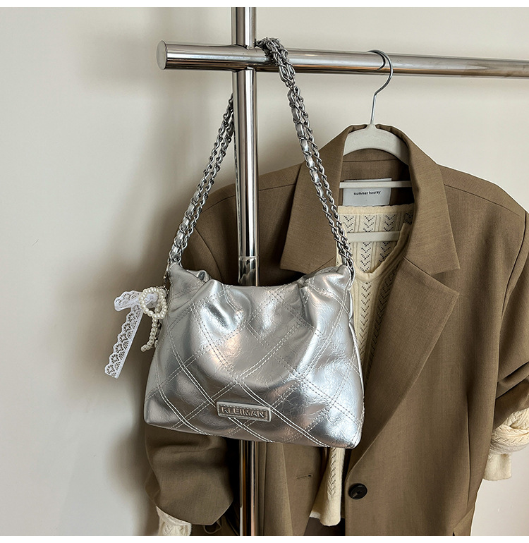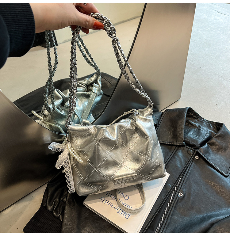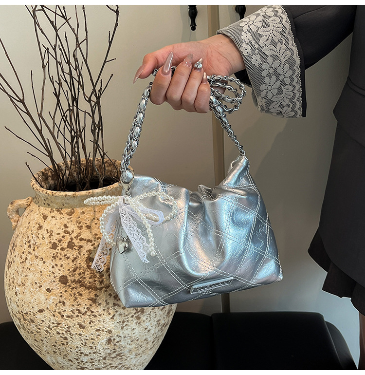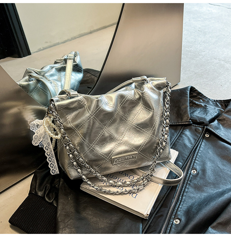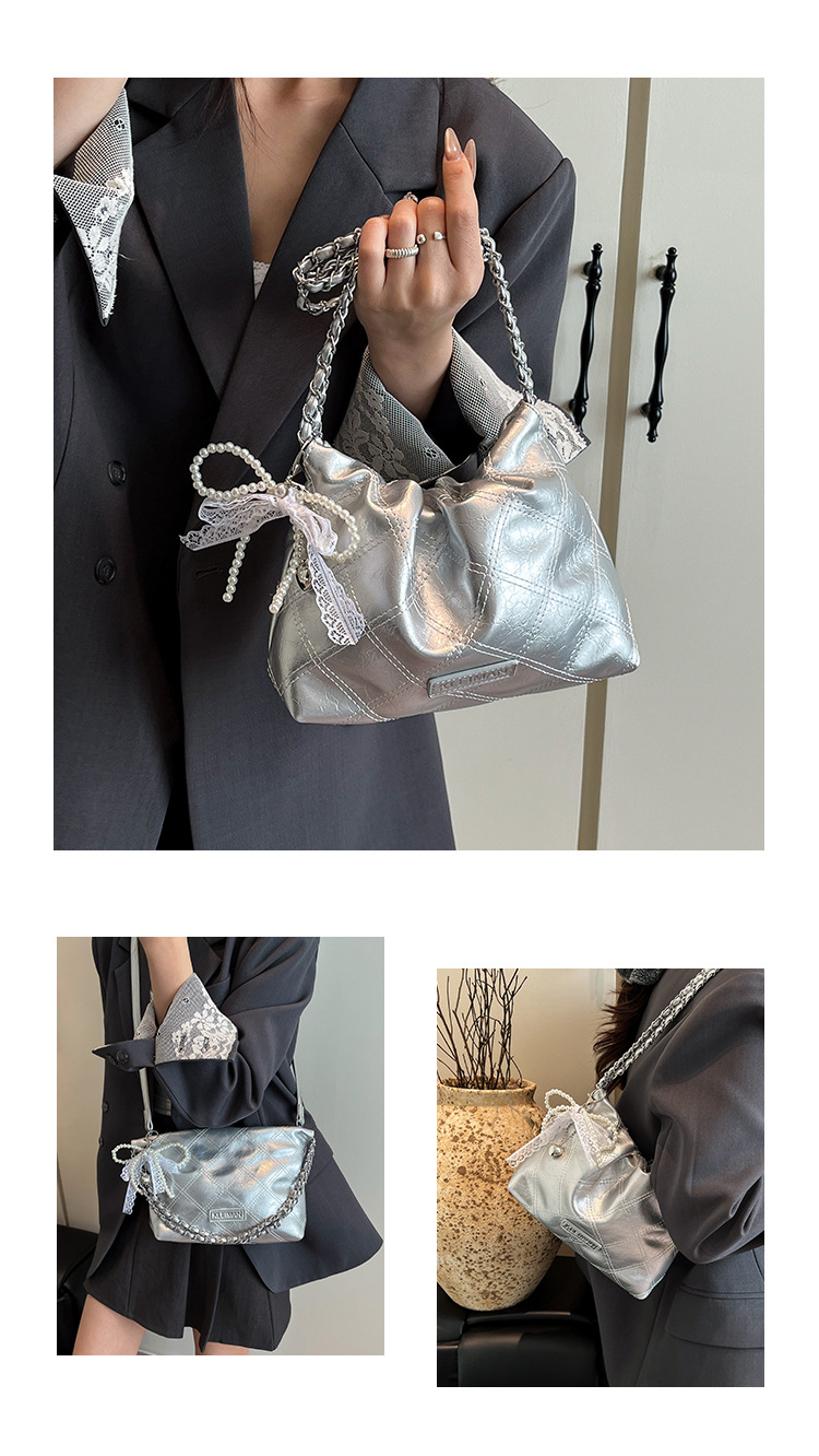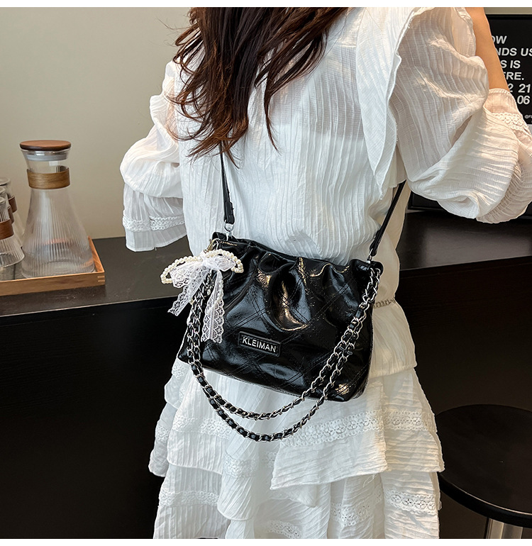 2025 夏ニッチシンプルカジュアルフレグランスクロスボディバッグショルダーバッグファッションハンドチェーンリボントートバッグ