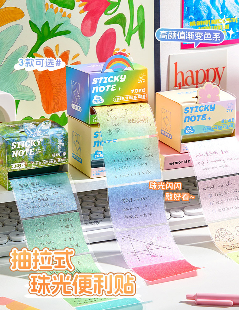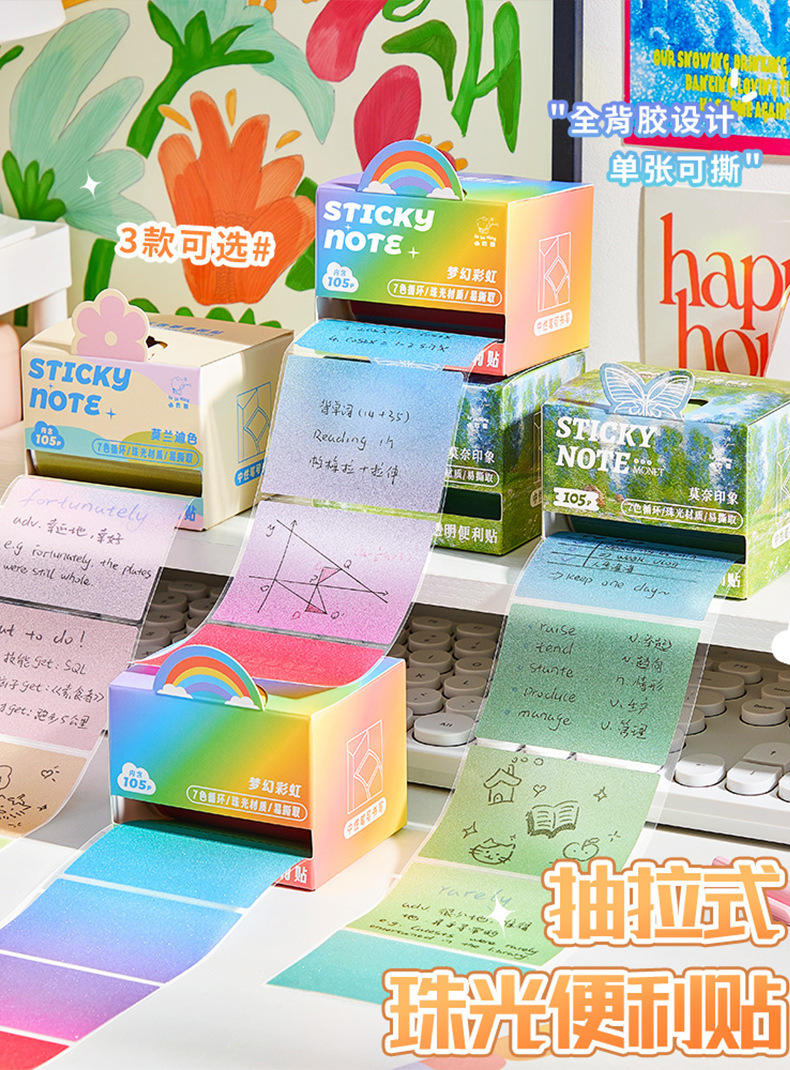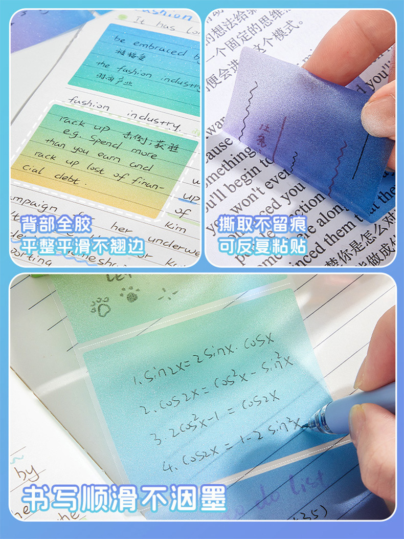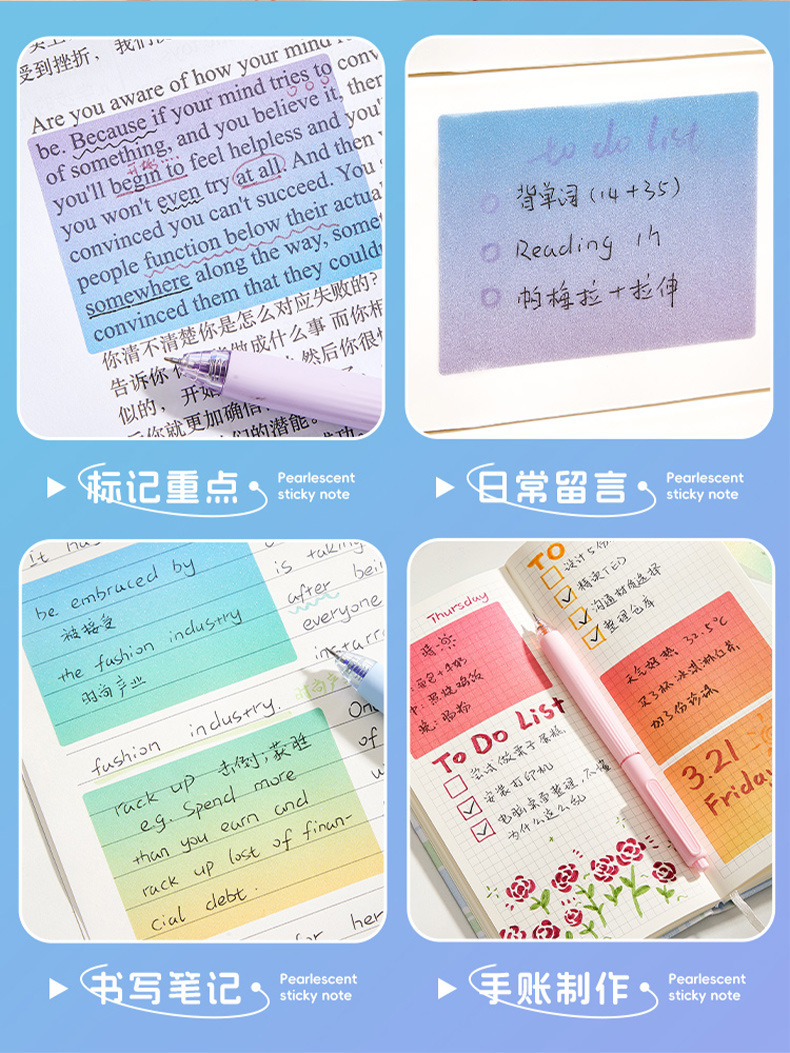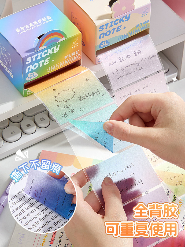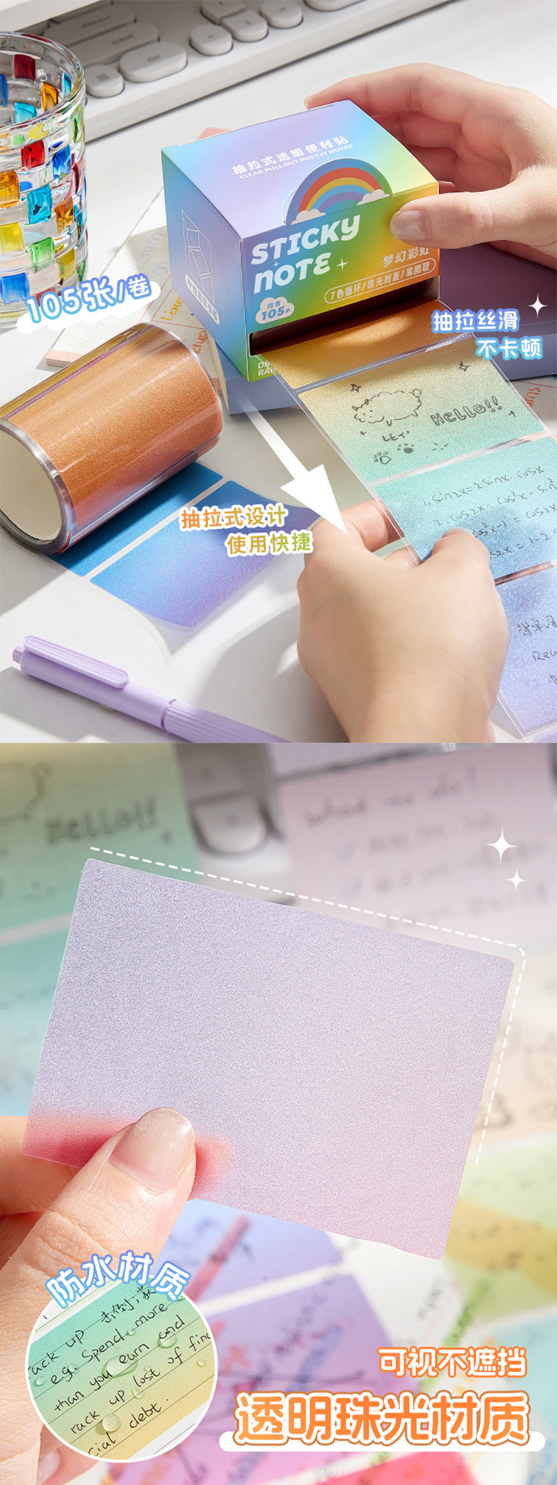 引き出し可能な真珠光沢のある付箋、透明な学生用書き込み可能なメモステッカー、見栄えの良いメモ帳ステッカー