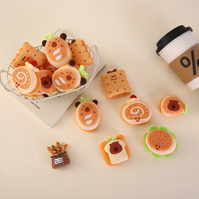 新型アニメ食游シリーズかわいいハンバーグパン部品diy髪飾り服子供靴靴下ブローチ補助材料