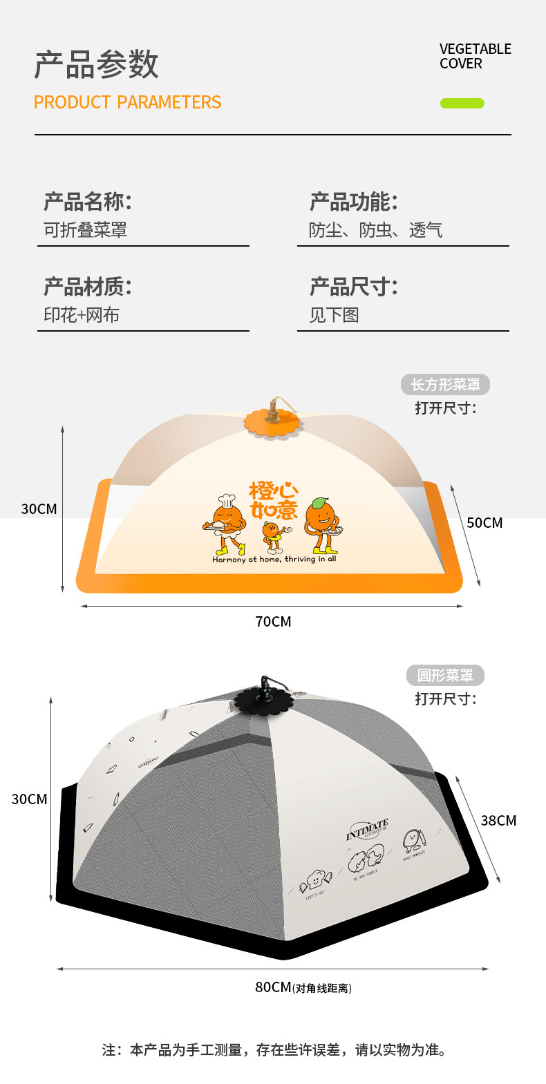 高級野菜カバー、家庭用折りたたみ式洗える野菜カバー、防塵・防虫加工品、食べ残しフードカバー、テーブルカバー