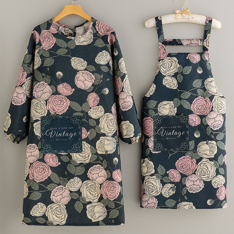 新しい韓国スタイルのキャンバス長袖スモックエプロン女性のキッチン家庭用作業調理防汚エプロン耐摩耗性作業服