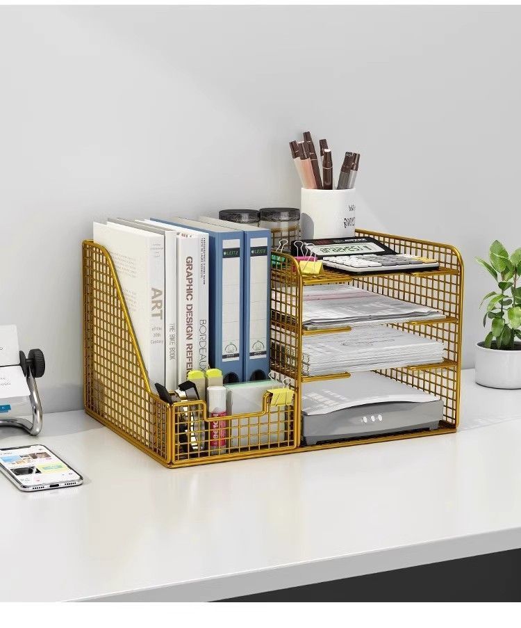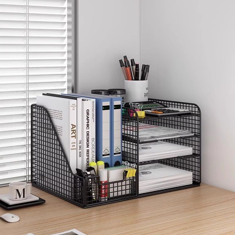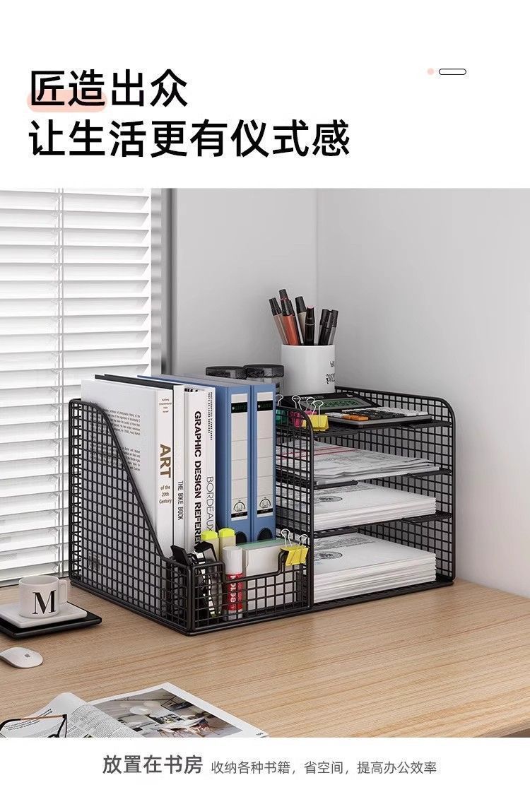 デスクトップ本棚ファイル収納ラックデスクフォルダー収納ボックス書籍と新聞金属多層 A4 紙ホルダー