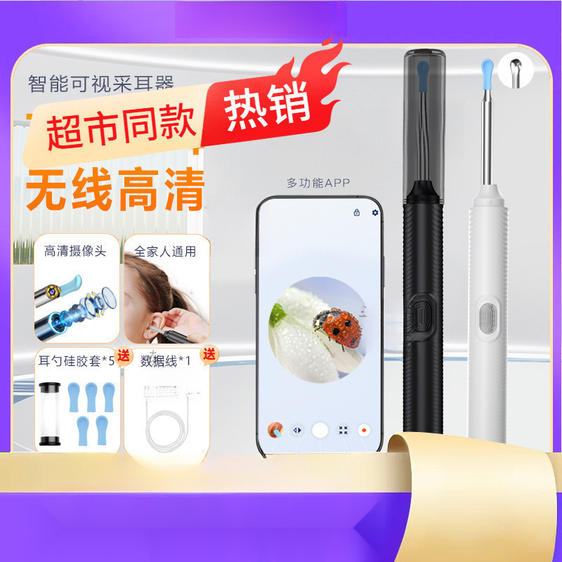 ライト付き家庭用ビジュアル耳かき、耳かきクリーニングツール、没入型減圧ビデオ耳かき