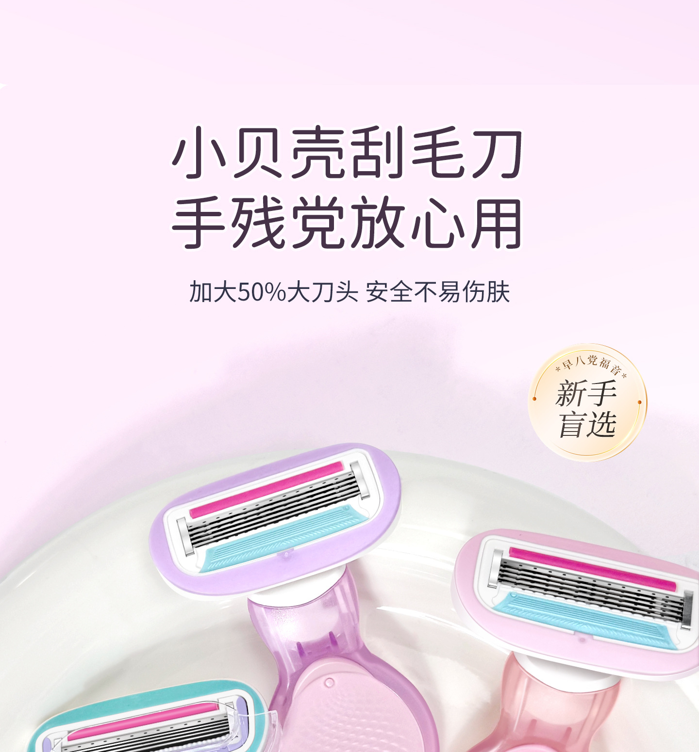 女性用ソープヘッド付きスモールシェル全身シェーバー、手動脇毛除去、脚毛除去、陰部脱毛ナイフ