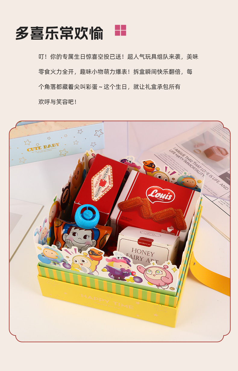 新商品の漫画の赤ちゃんの子供の1歳の贈り物の箱のお土産の贈り物のプレゼントの箱の誕生日の漫画の空の箱の間食の贈り物の箱の卸売り