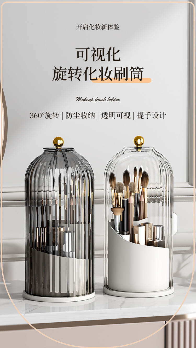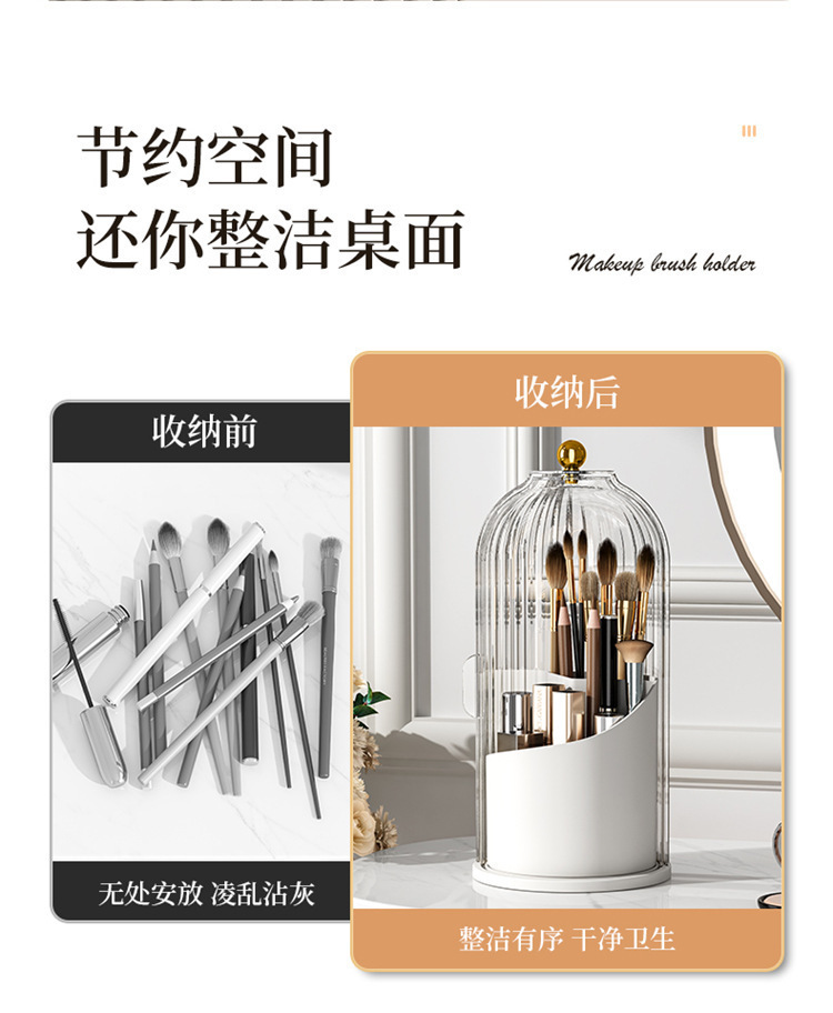 鸟笼笔筒置物架防尘分格桌面化妆品收纳盒旋转化妆刷收纳筒梳妆台
