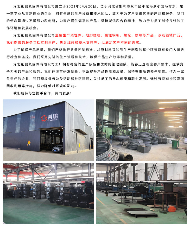 創鵬埋め込みU型ボルトカラースチール製スタンドフットボルトM10-M30 Q235炭素鋼8.8級