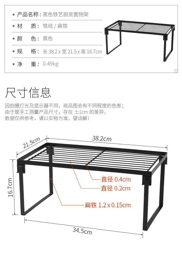 クロスボーダー黒鉄キッチン収納ラック浴室洗面台蛇口収納ラック赤単層高さ収納ラック