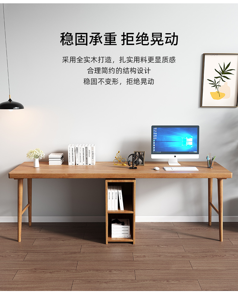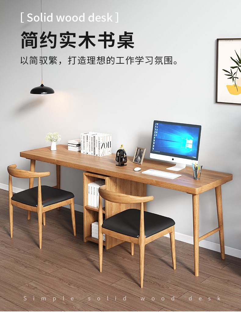 総無垢材デスク、シンプルモダンコンピュータデスク、オフィスデスク、壁掛け学習デスク、ログダブル読書デスク、ライティングデスク