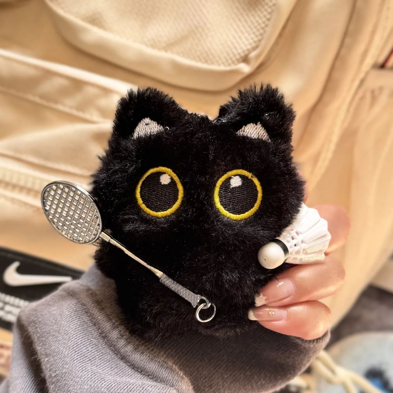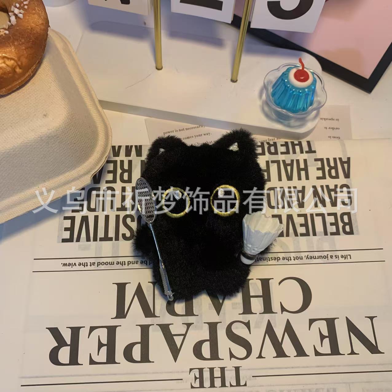 新しい小さな黒猫人形バドミントンペンダントボールセット限定人形バッグペンダントカップルキーホルダー